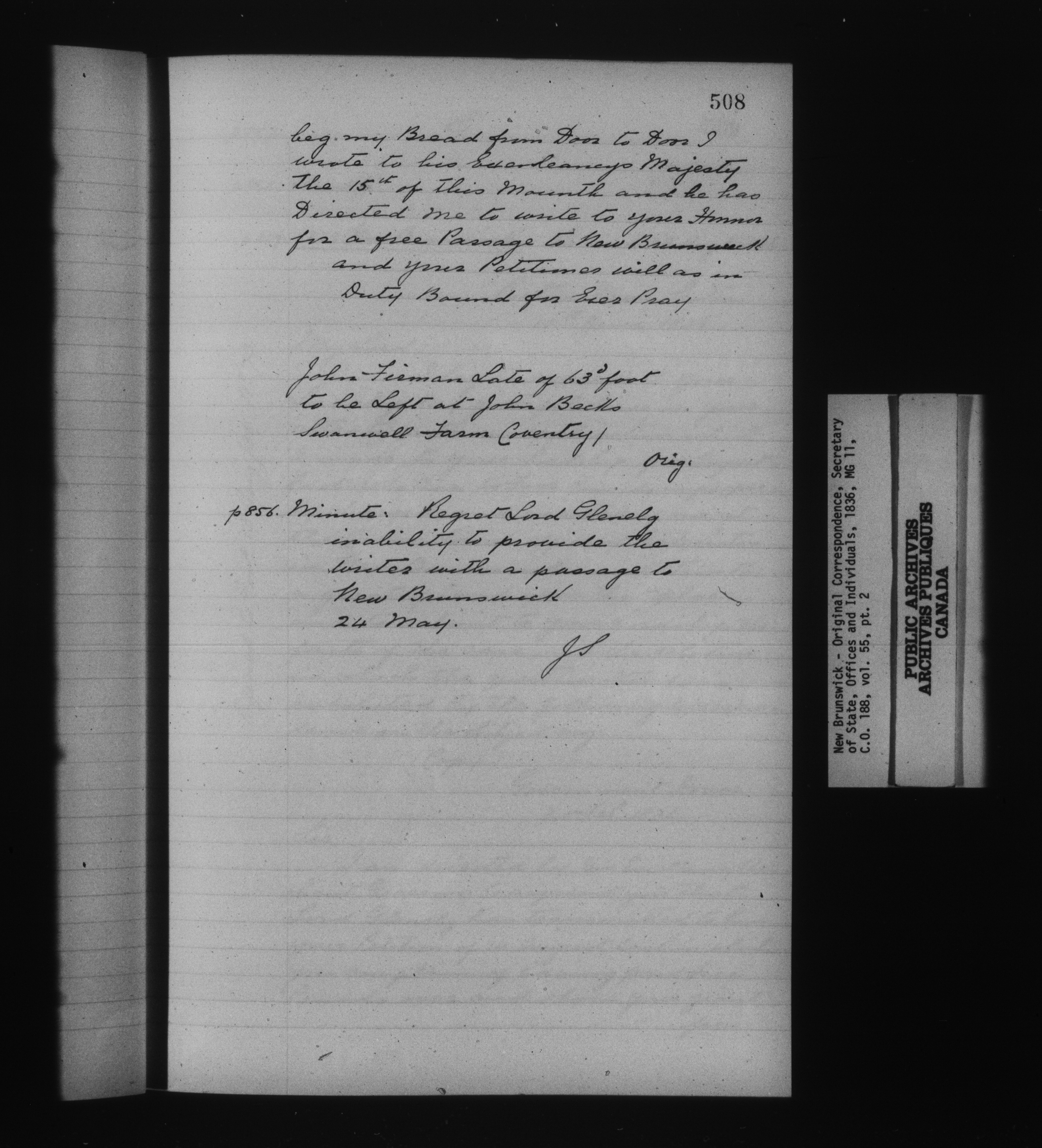 Great Britain. Colonial Office : New Brunswick original correspondence (CO 188) : C-13951