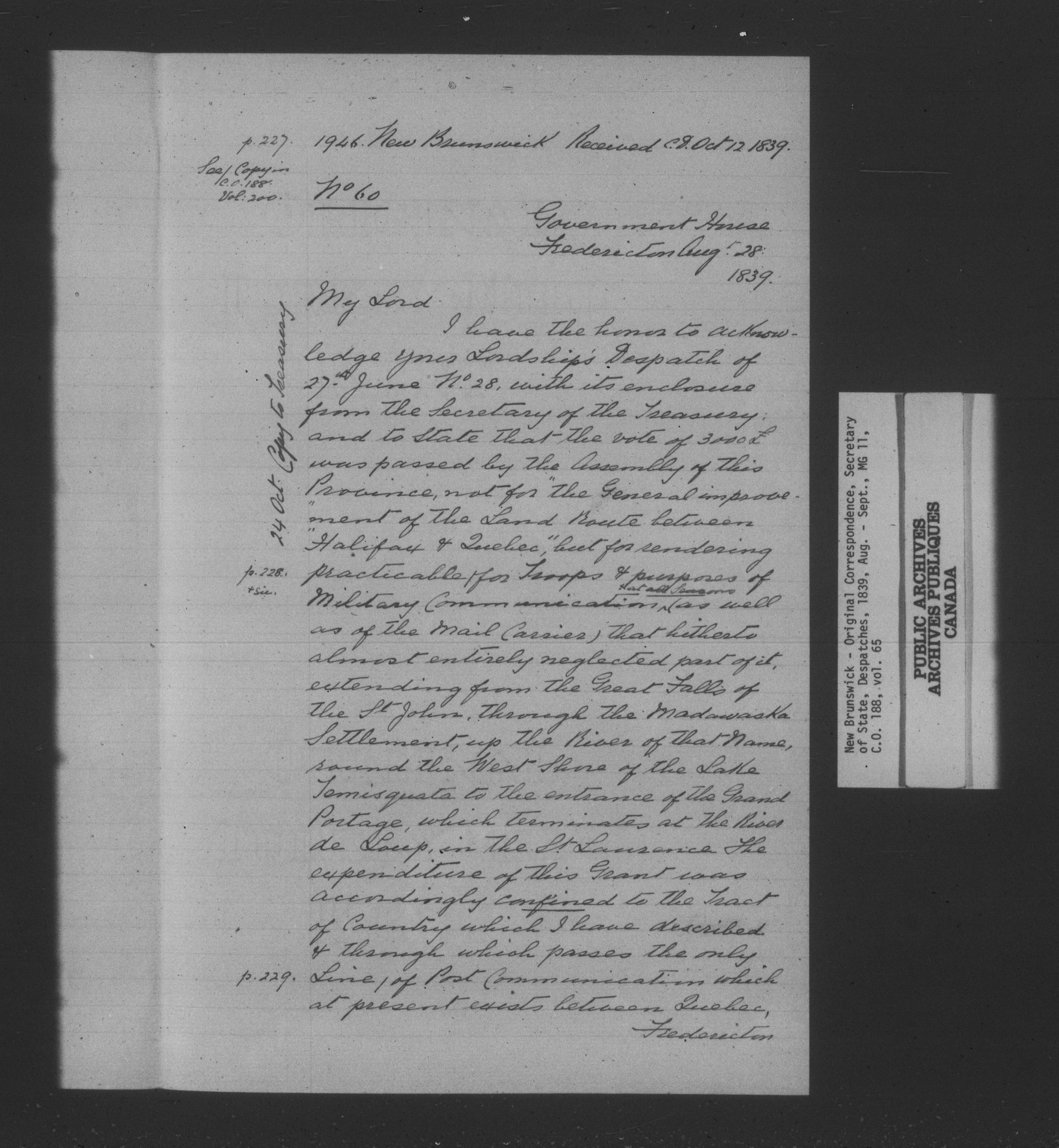 Great Britain. Colonial Office : New Brunswick original correspondence (CO 188) - 13954