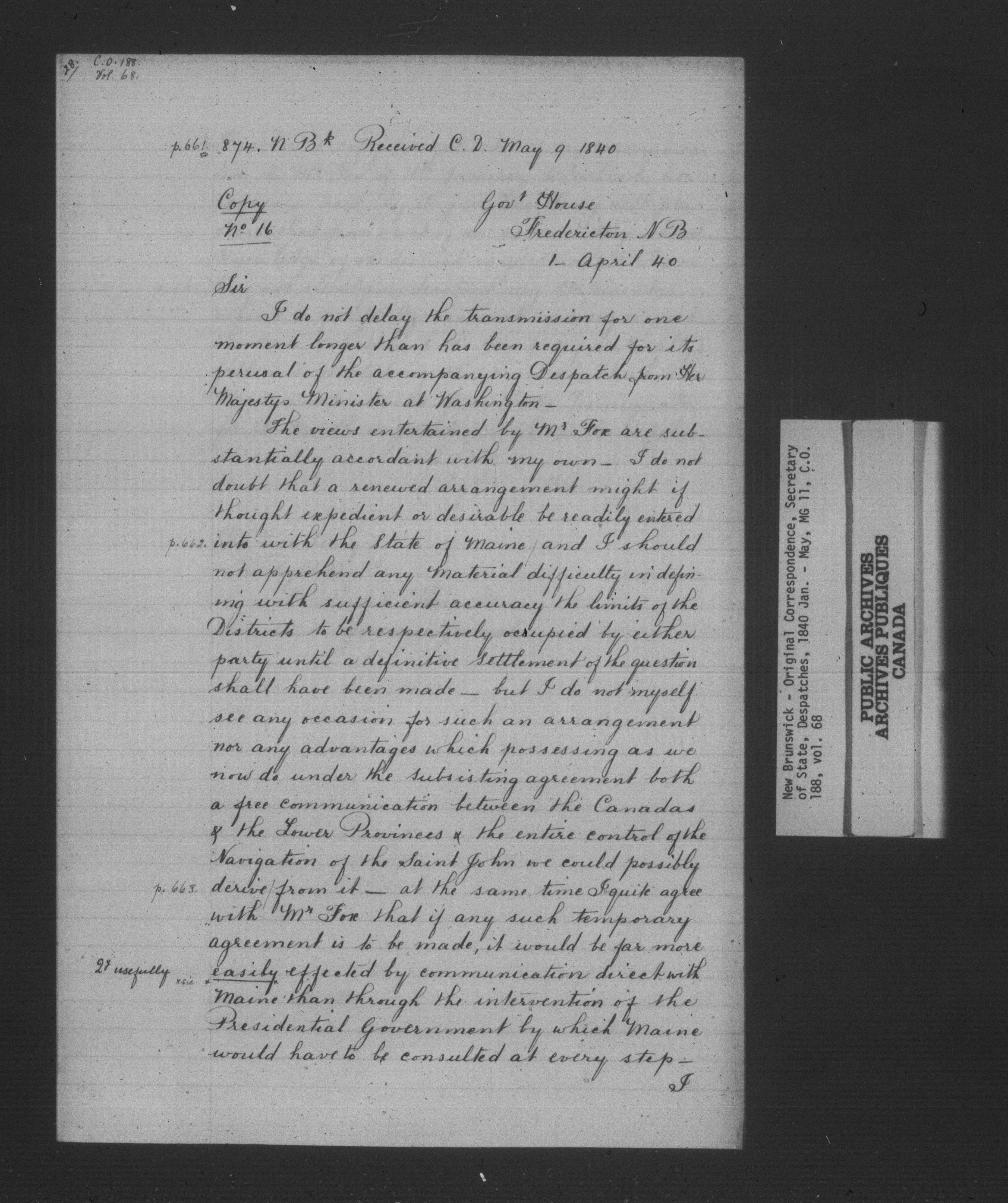 Great Britain. Colonial Office : New Brunswick original correspondence (CO 188) - 13954