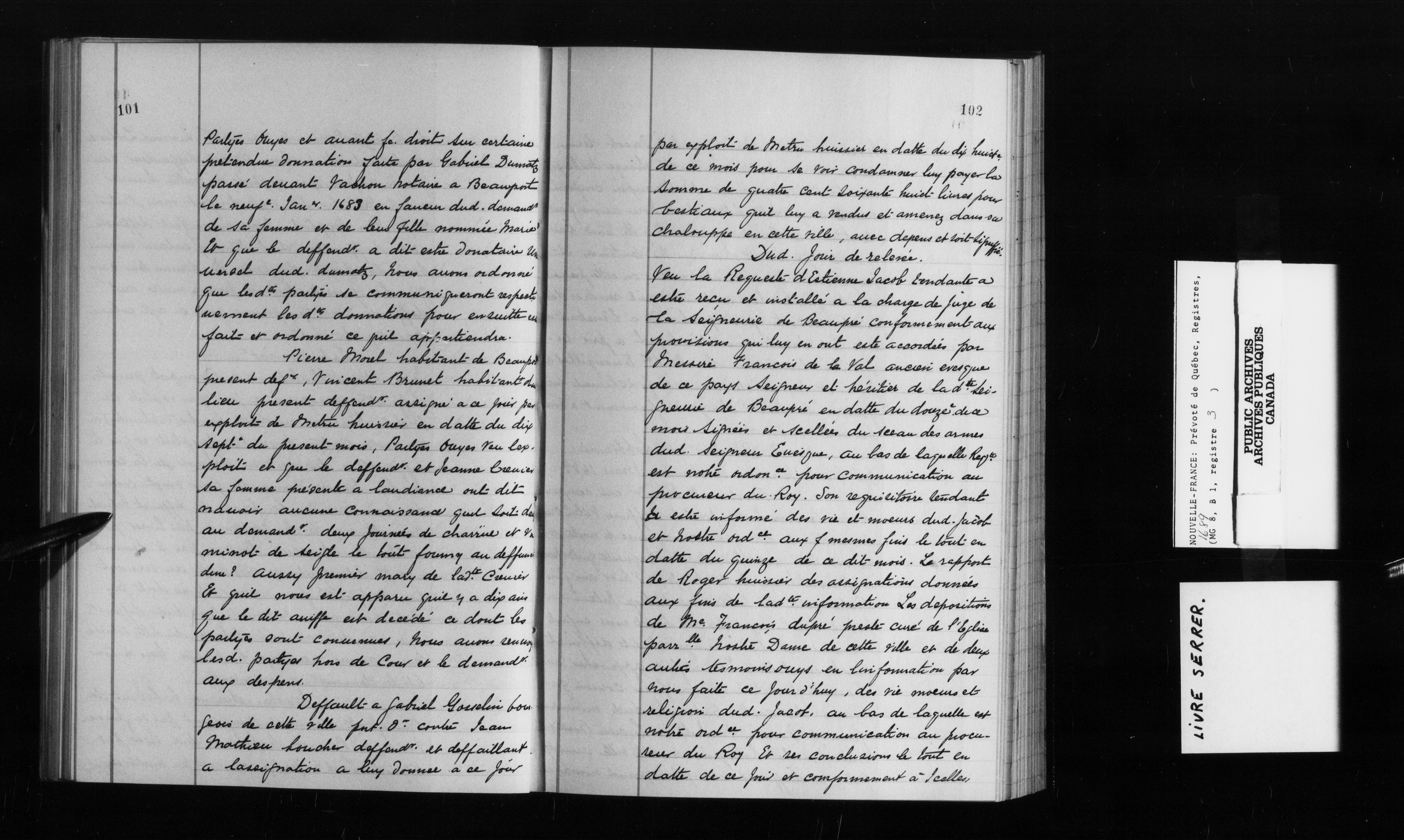 Fonds de la prévoté de Québec : registres des délibérations, jugements et ordres d'insinuation - 13966