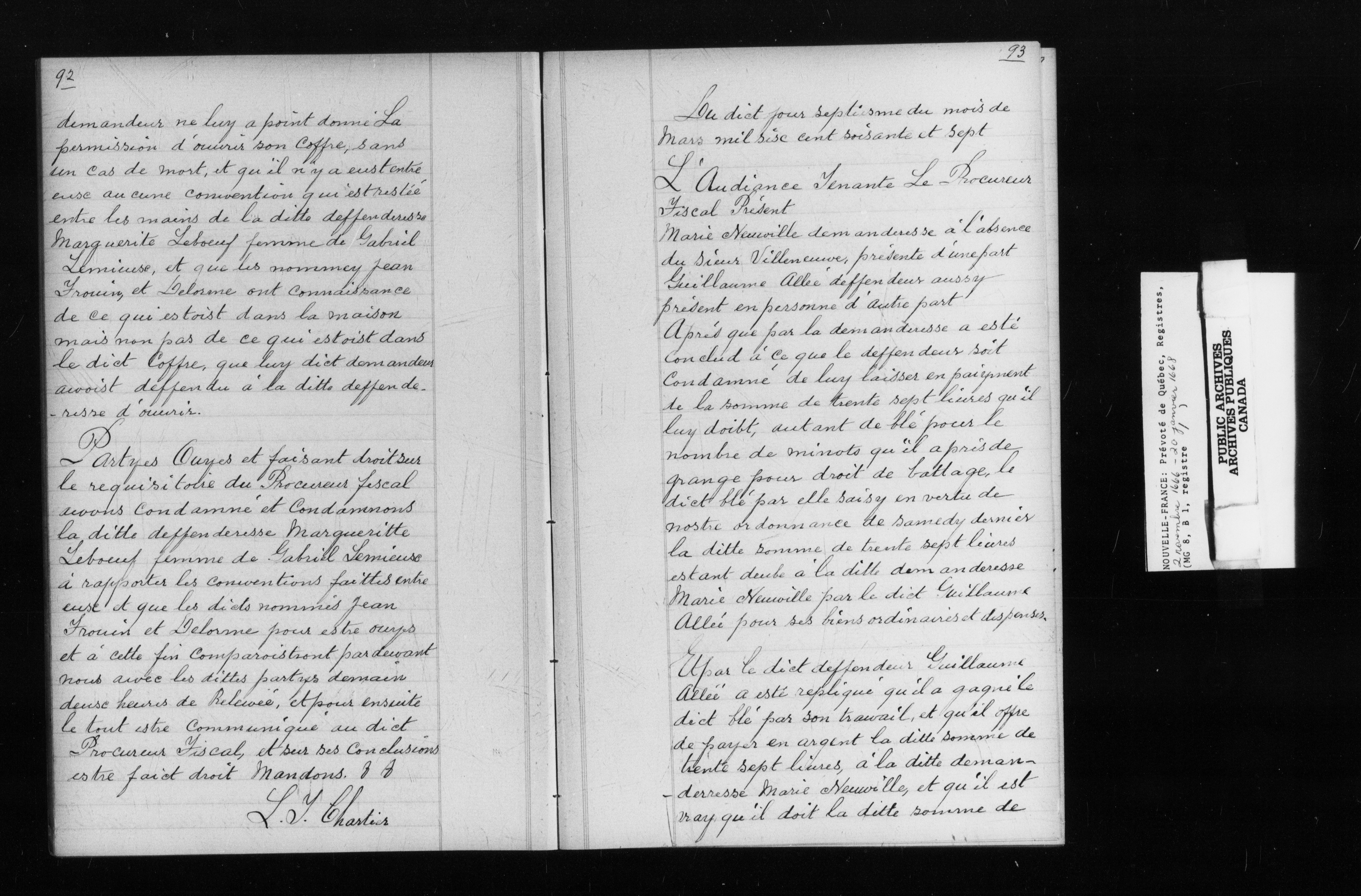 Fonds de la prévoté de Québec : registres des délibérations, jugements et ordres d'insinuation - 13966