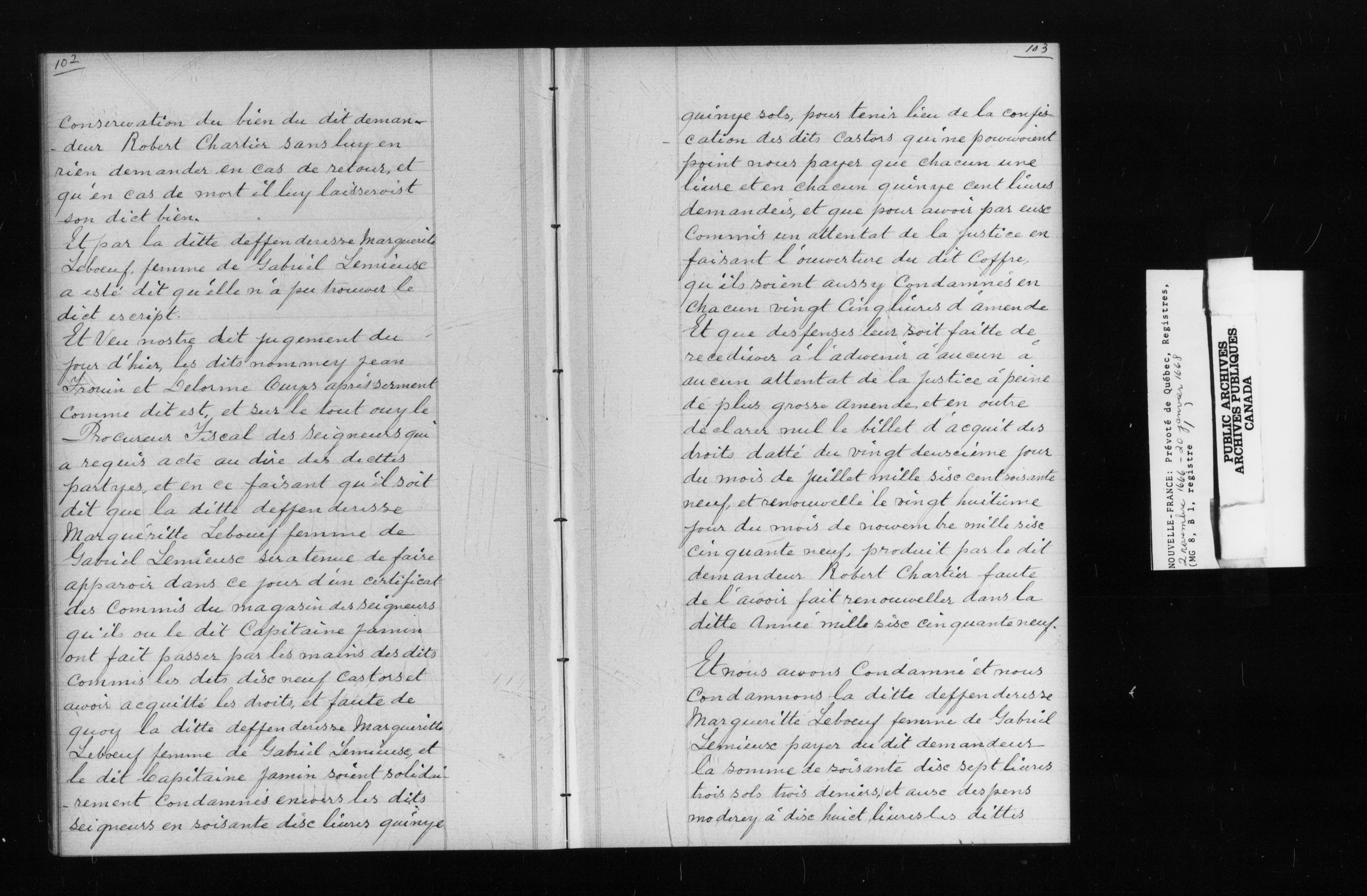 Fonds de la prévoté de Québec : registres des délibérations, jugements et ordres d'insinuation - 13966