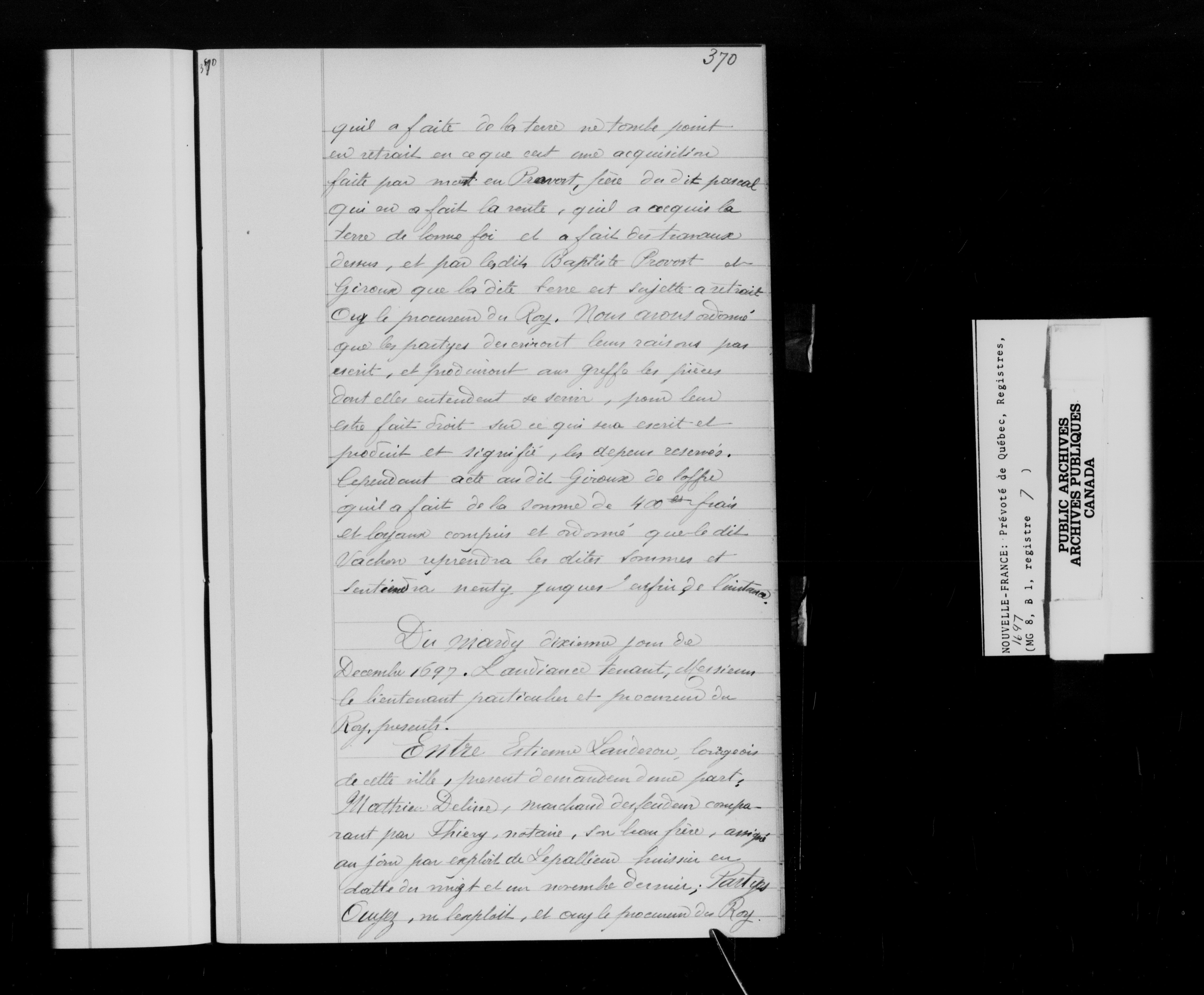 Fonds de la prévoté de Québec : registres des délibérations, jugements et ordres d'insinuation - 13967
