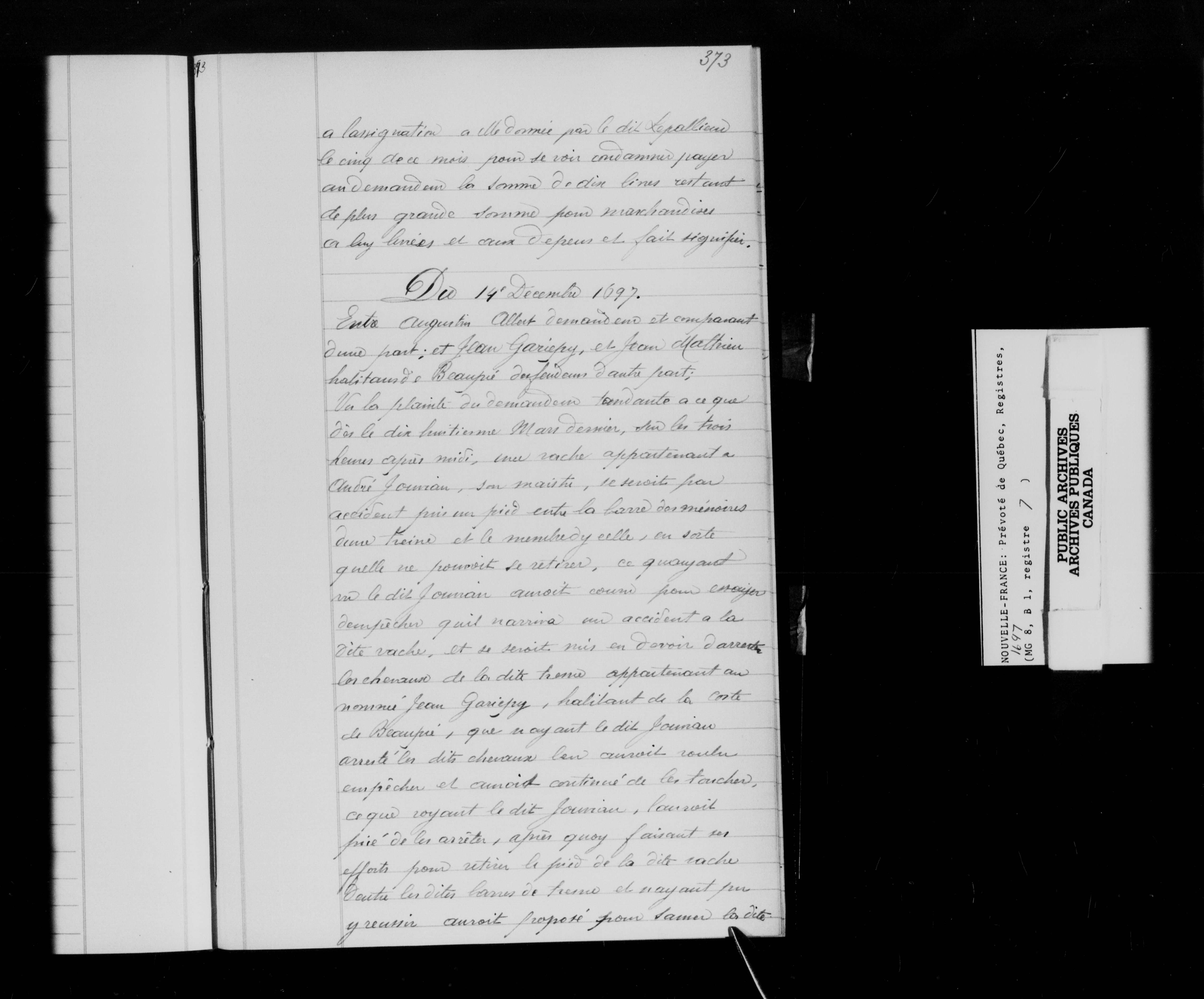 Fonds de la prévoté de Québec : registres des délibérations, jugements et ordres d'insinuation - 13967