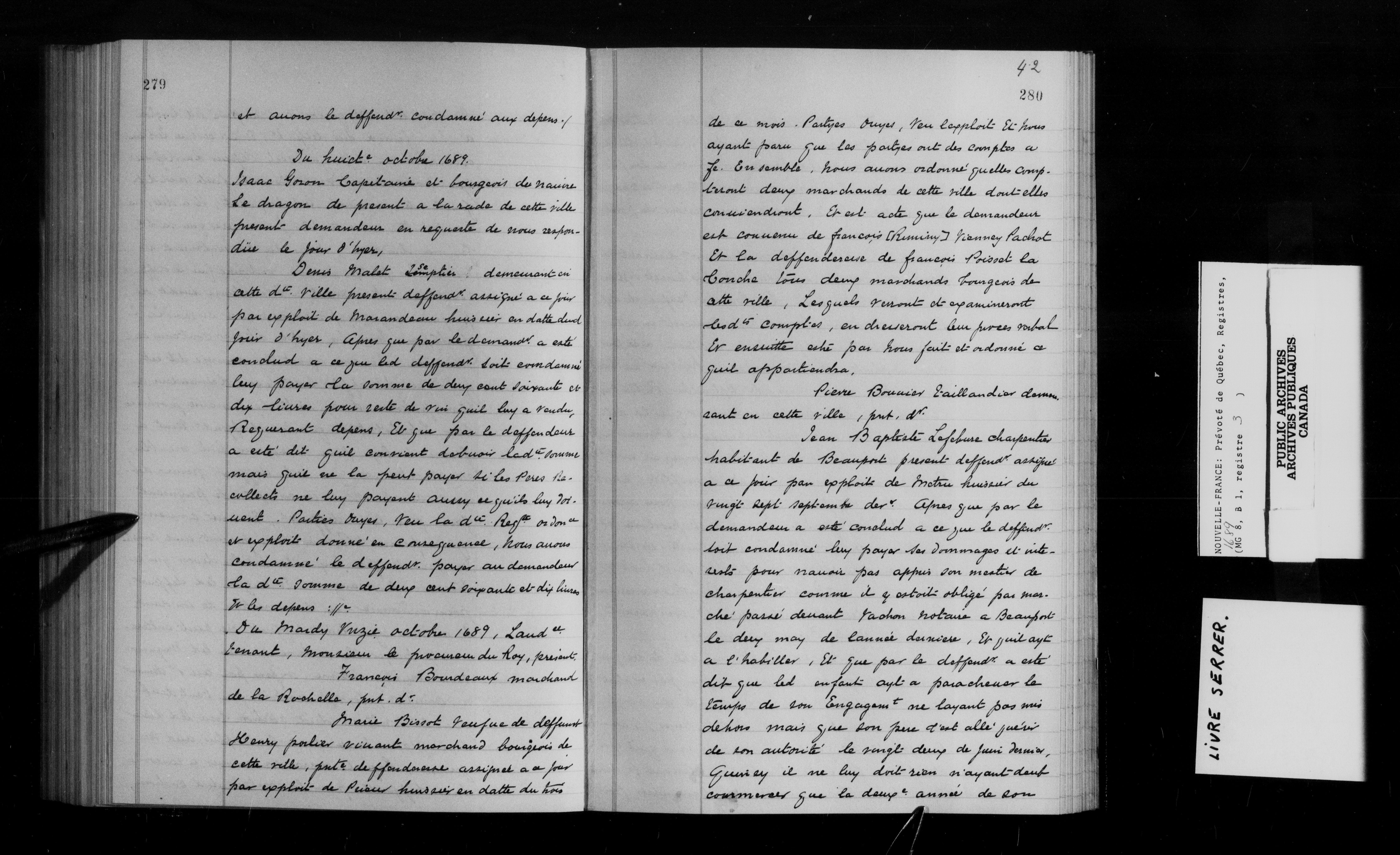 Fonds de la prévoté de Québec : registres des délibérations, jugements et ordres d'insinuation - 13967