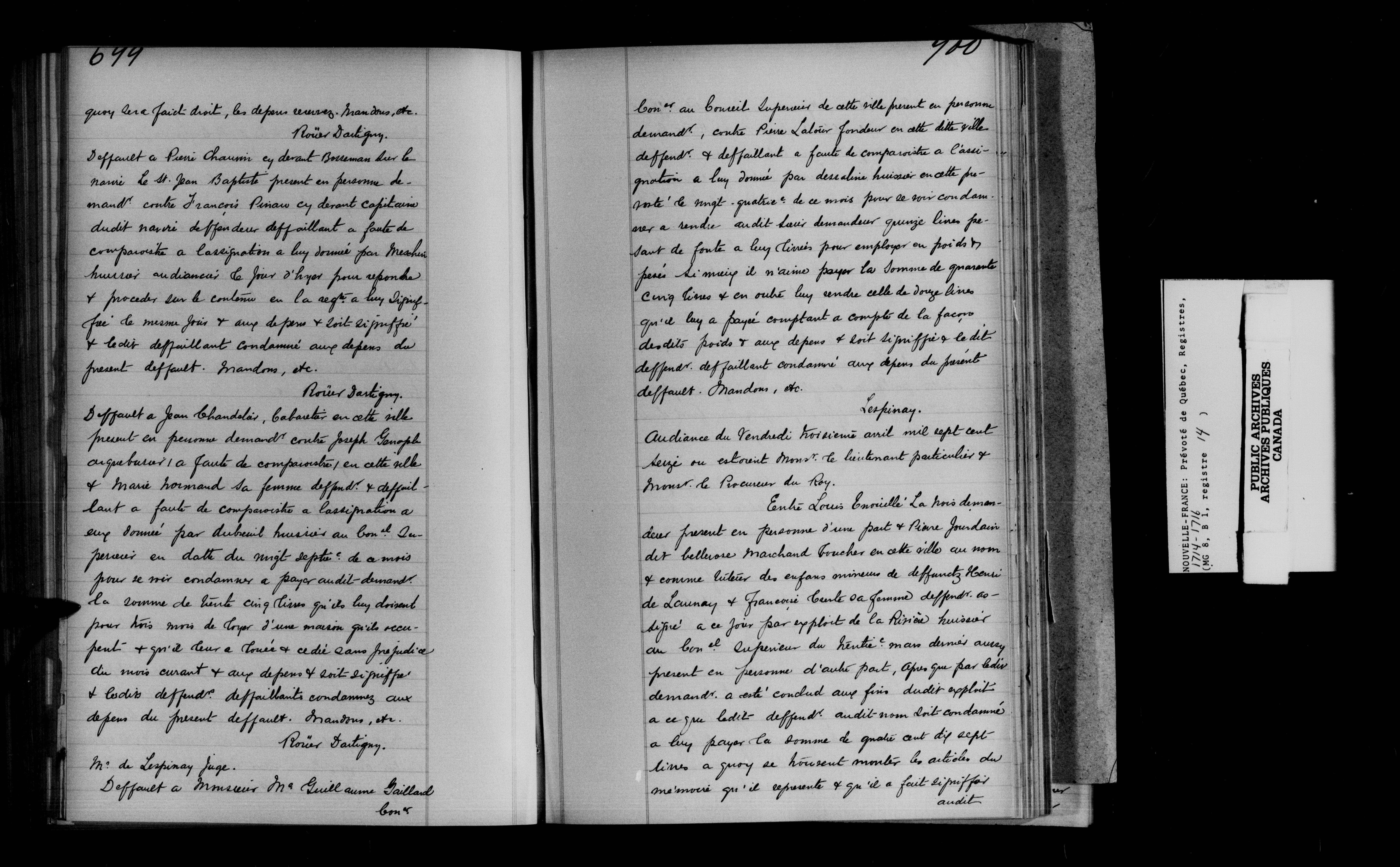 Fonds de la prévoté de Québec : registres des délibérations, jugements et ordres d'insinuation - 13969