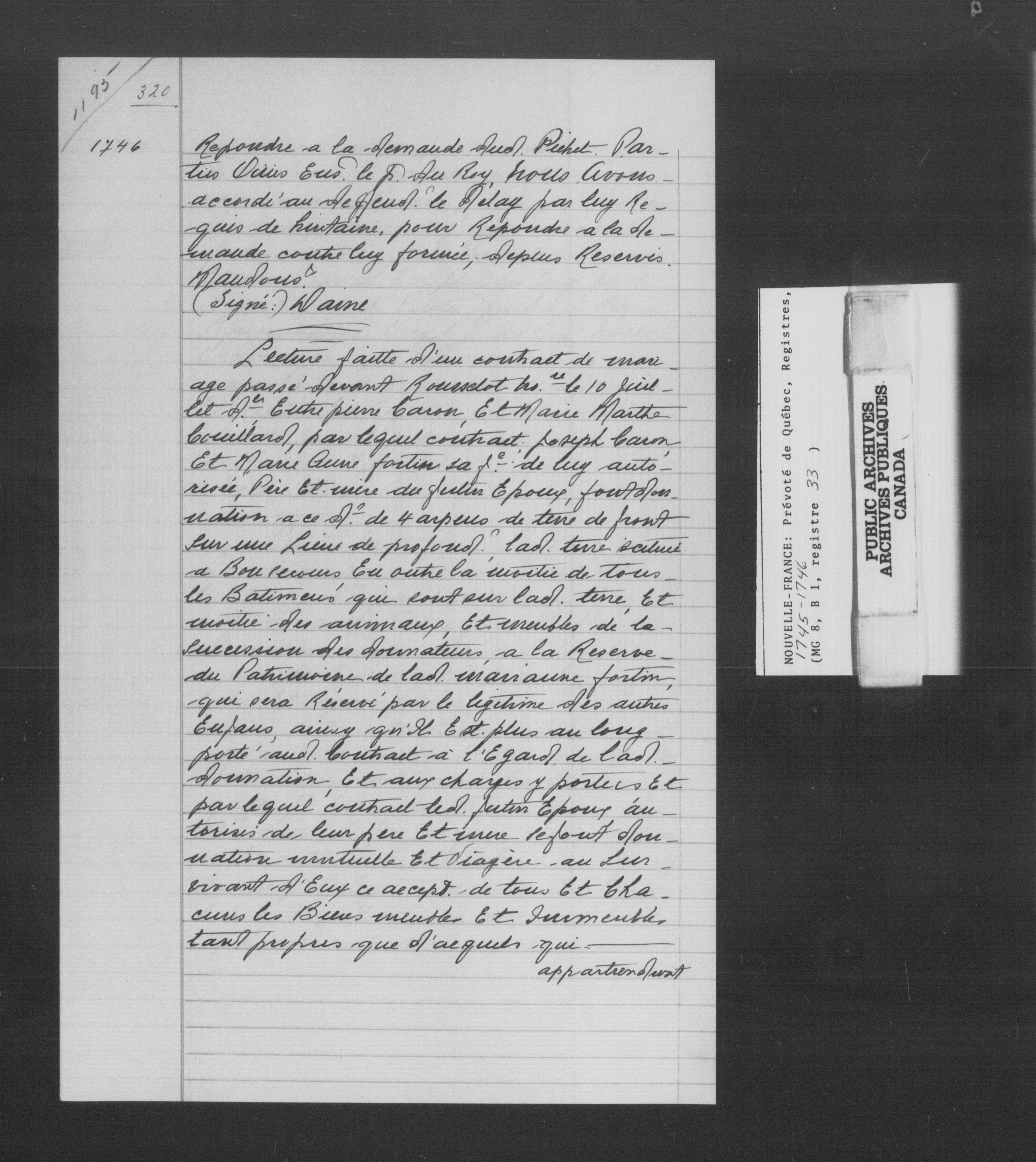 Fonds de la prévoté de Québec : registres des délibérations, jugements et ordres d'insinuation - 13975