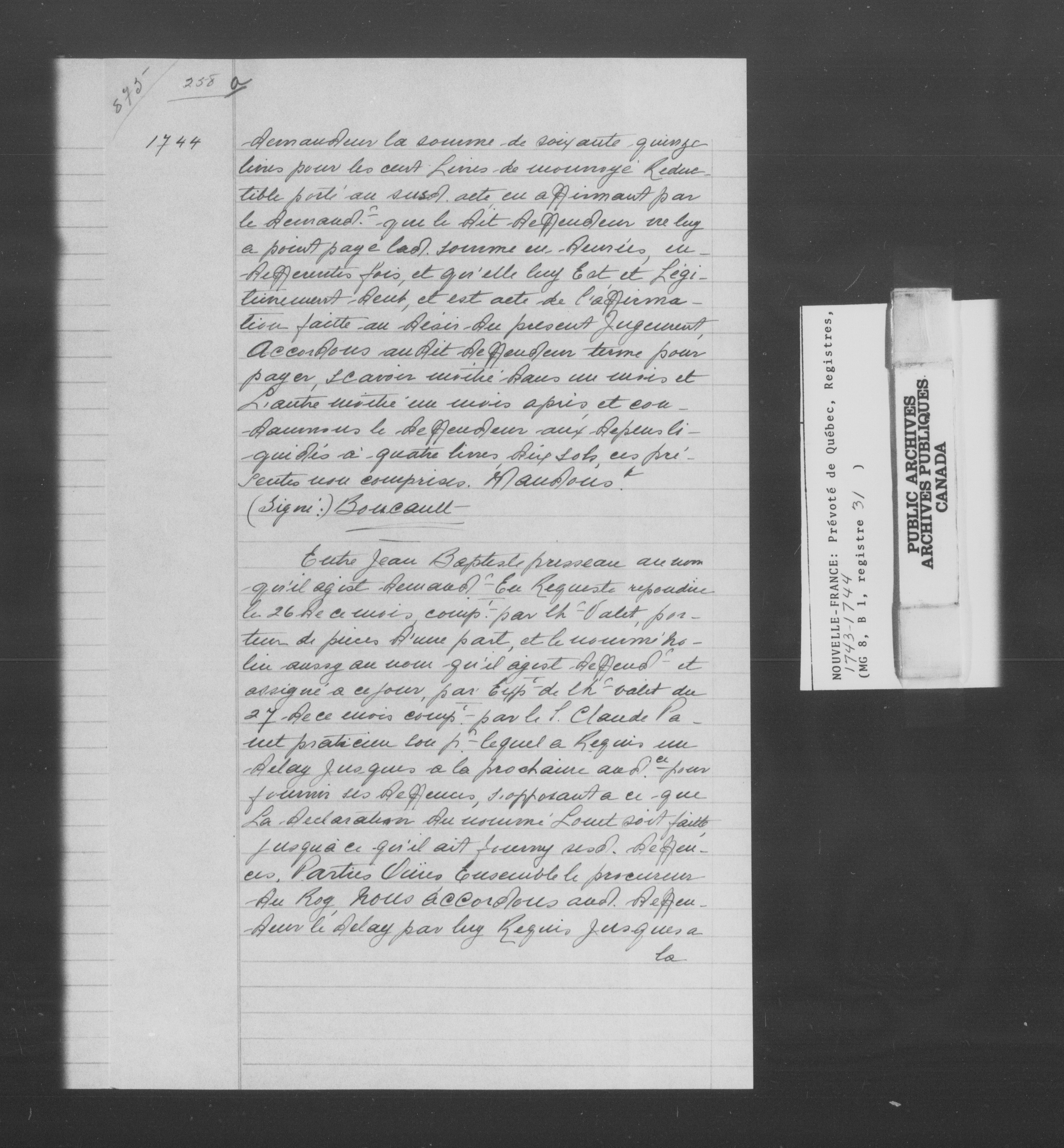 Fonds de la prévoté de Québec : registres des délibérations, jugements et ordres d'insinuation - 13975