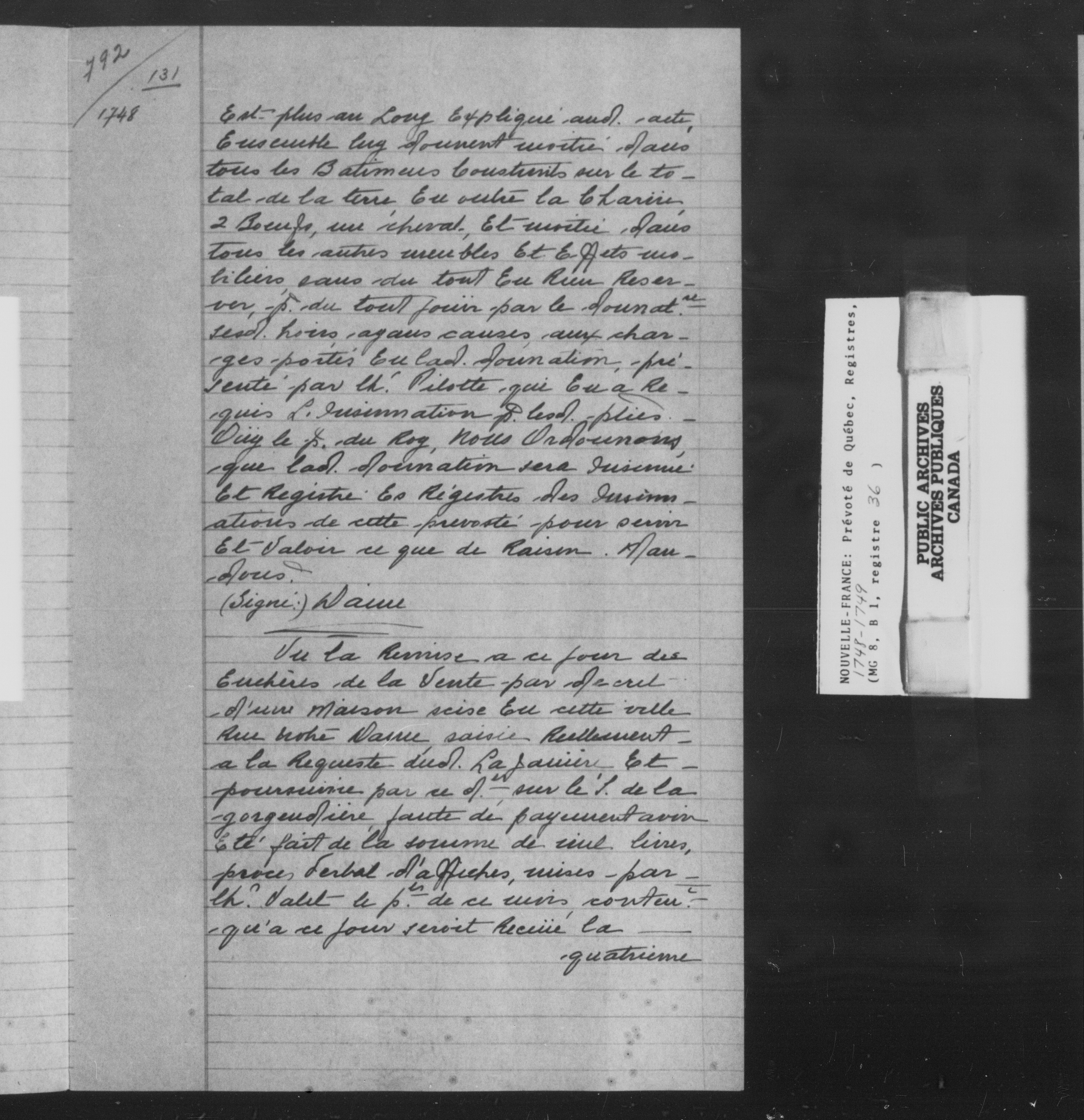 Fonds de la prévoté de Québec : registres des délibérations, jugements et ordres d'insinuation - 13977