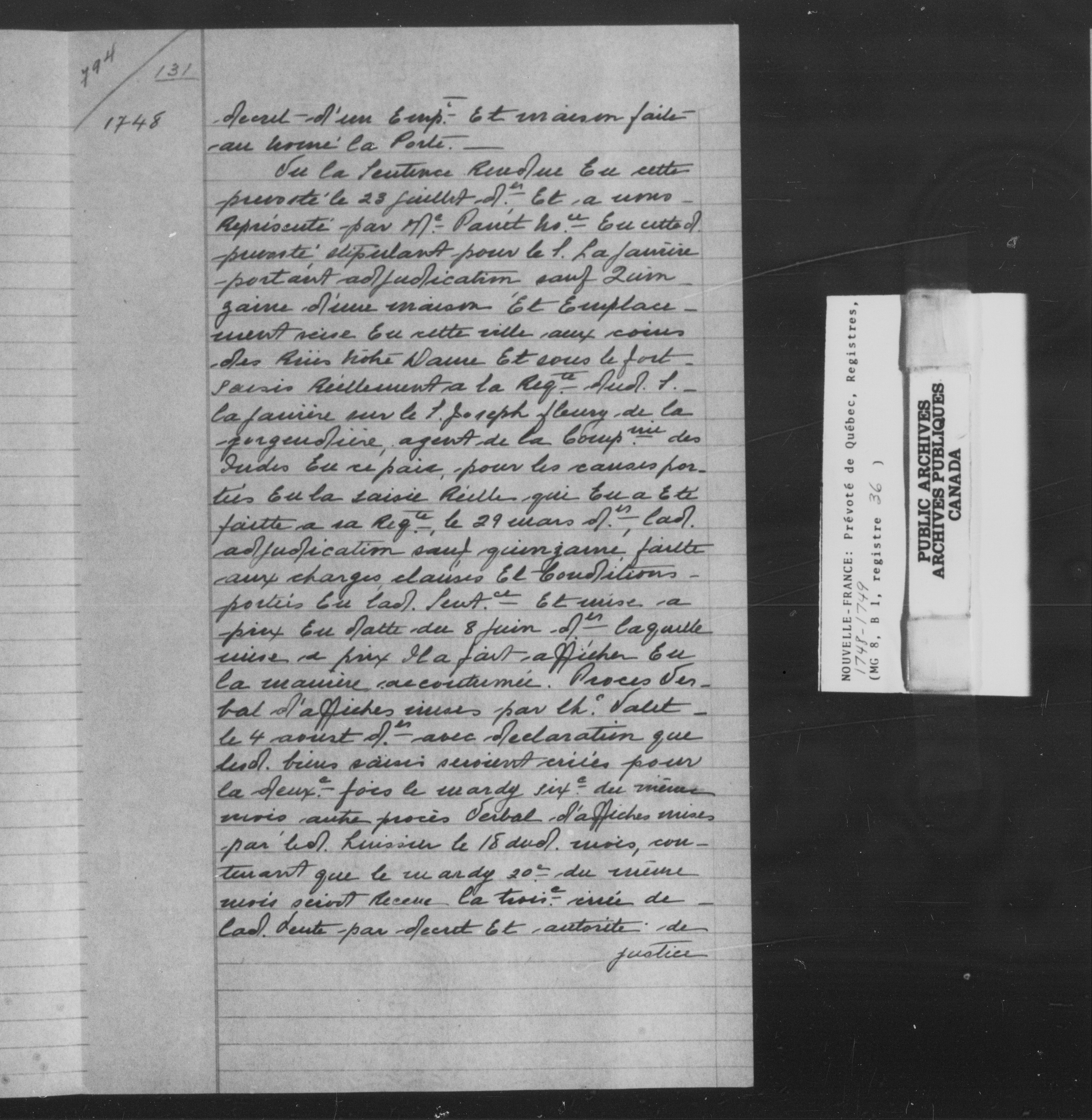 Fonds de la prévoté de Québec : registres des délibérations, jugements et ordres d'insinuation - 13977