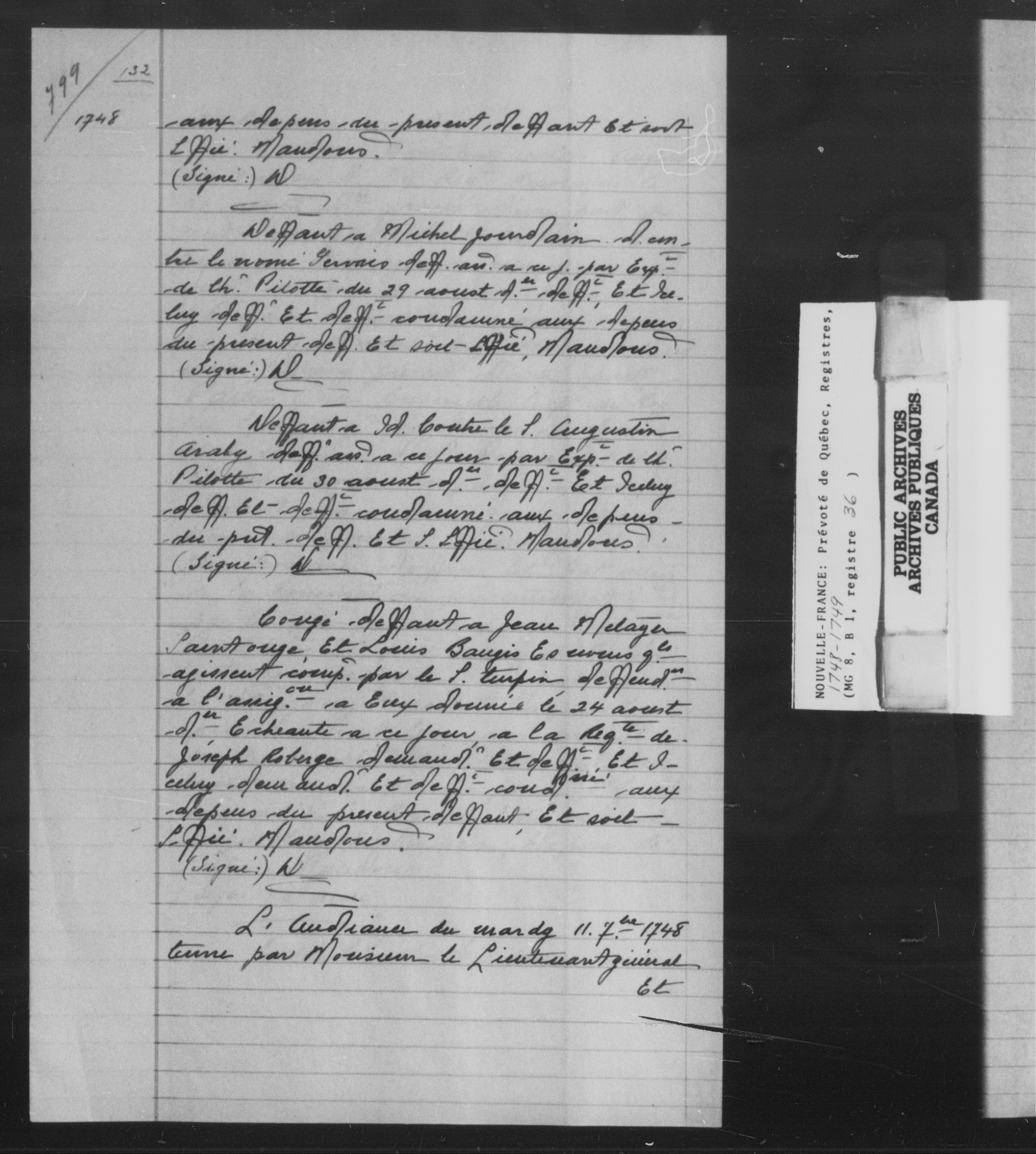 Fonds de la prévoté de Québec : registres des délibérations, jugements et ordres d'insinuation - 13977