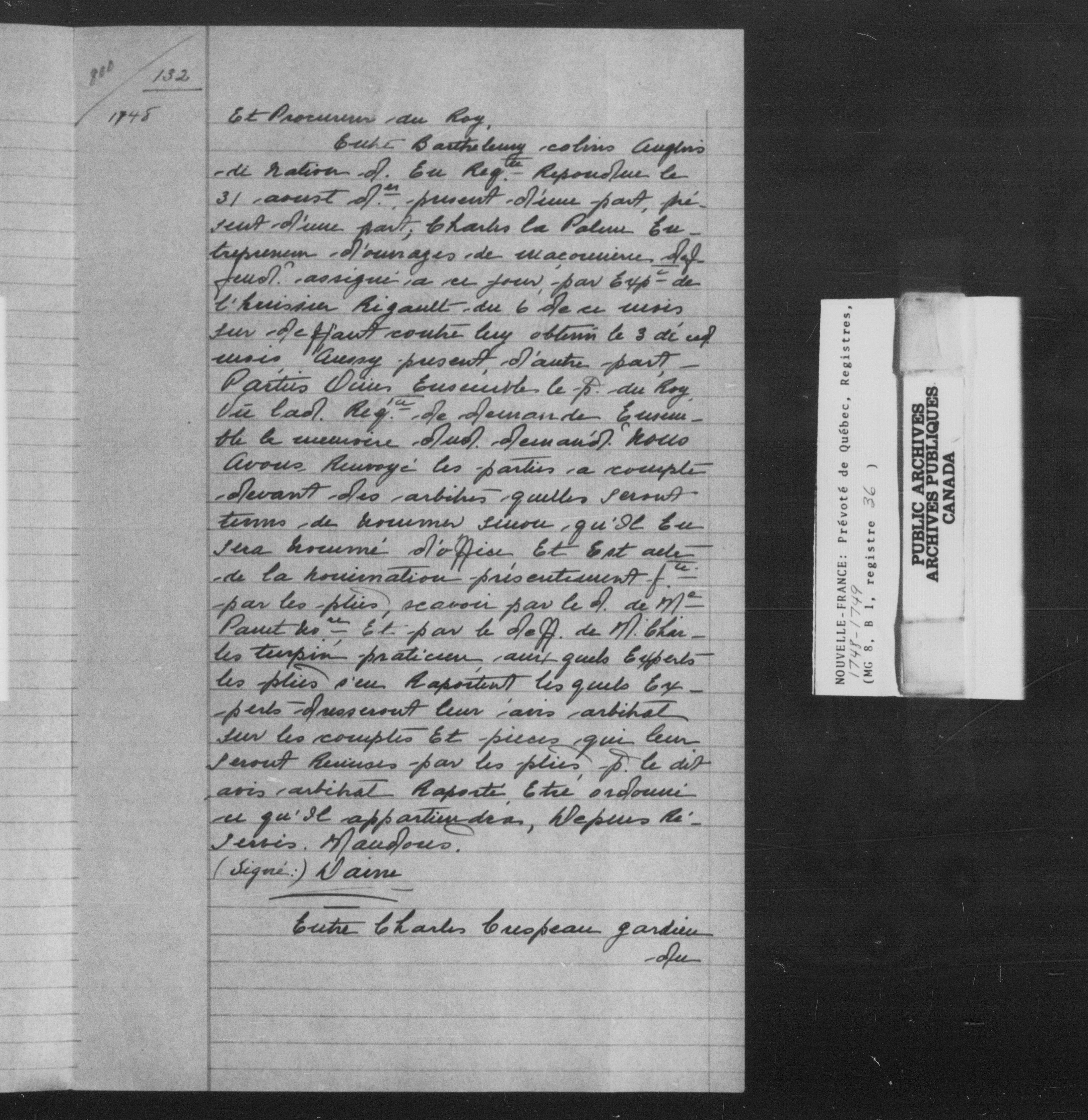 Fonds de la prévoté de Québec : registres des délibérations, jugements et ordres d'insinuation - 13977