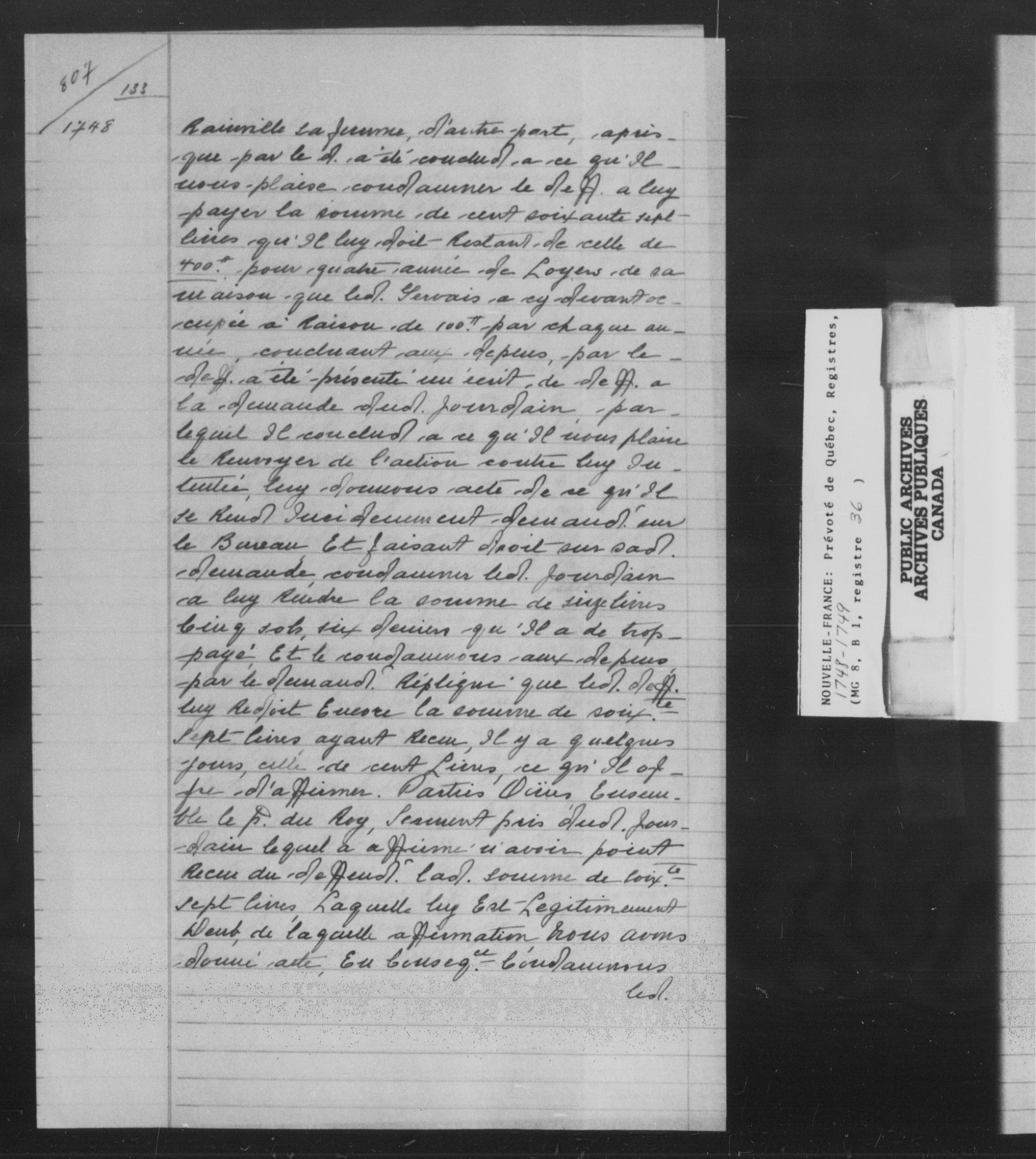 Fonds de la prévoté de Québec : registres des délibérations, jugements et ordres d'insinuation - 13977