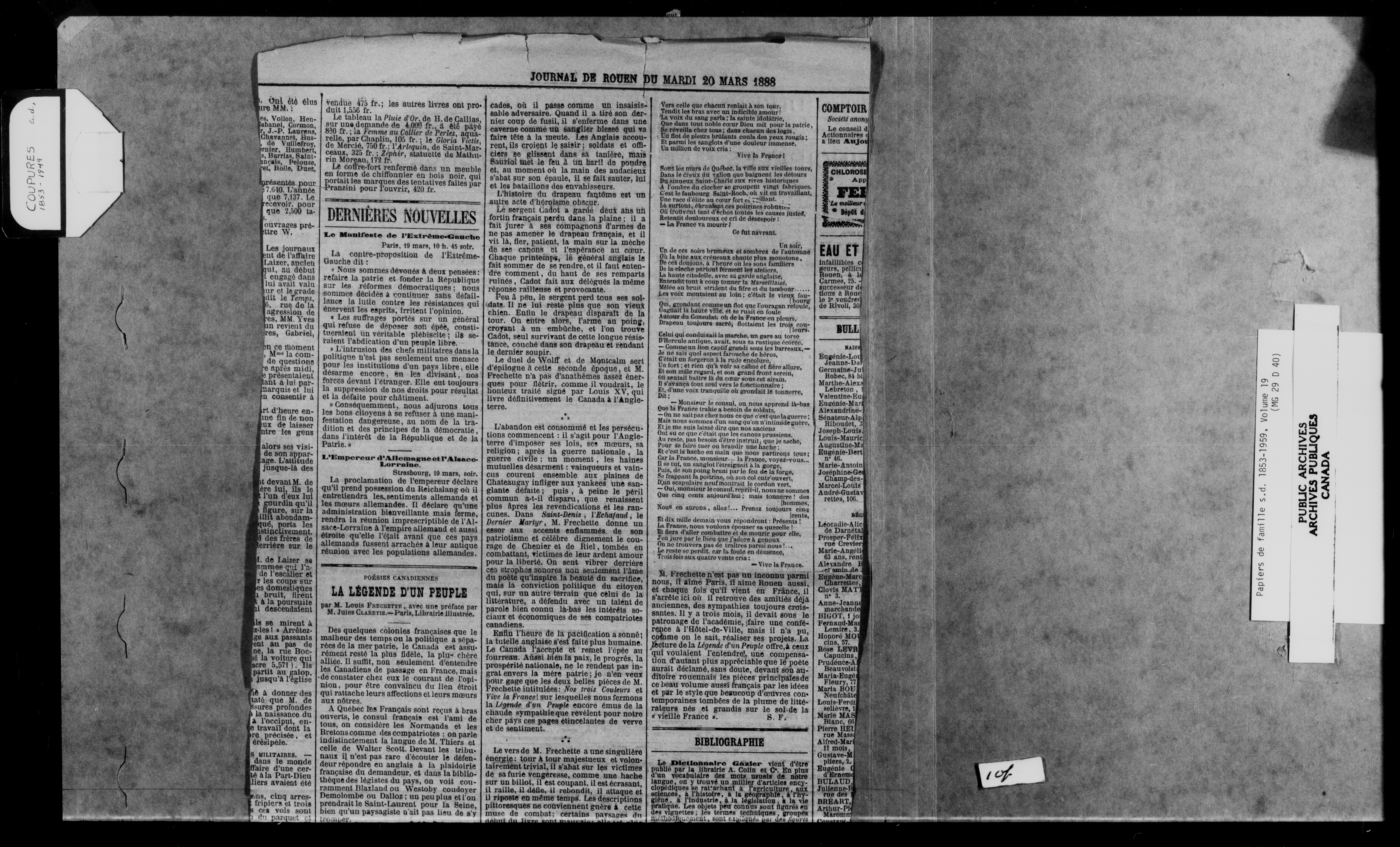 Fonds Louis-Honoré Fréchette : C-13993