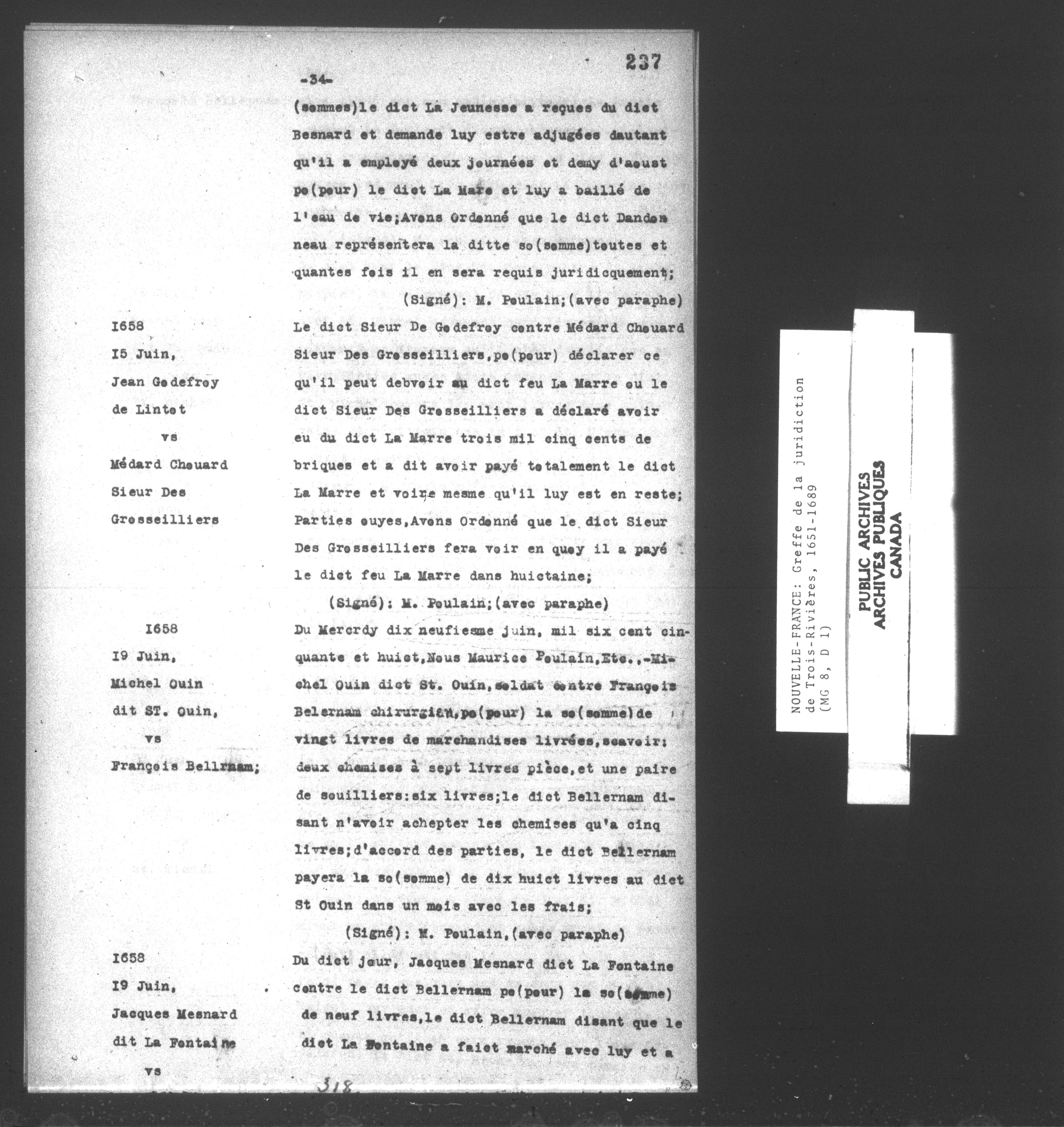 Nouvelle-France,Greffe des juridiction de Trois Rivières : Correspondance officielle - 13994