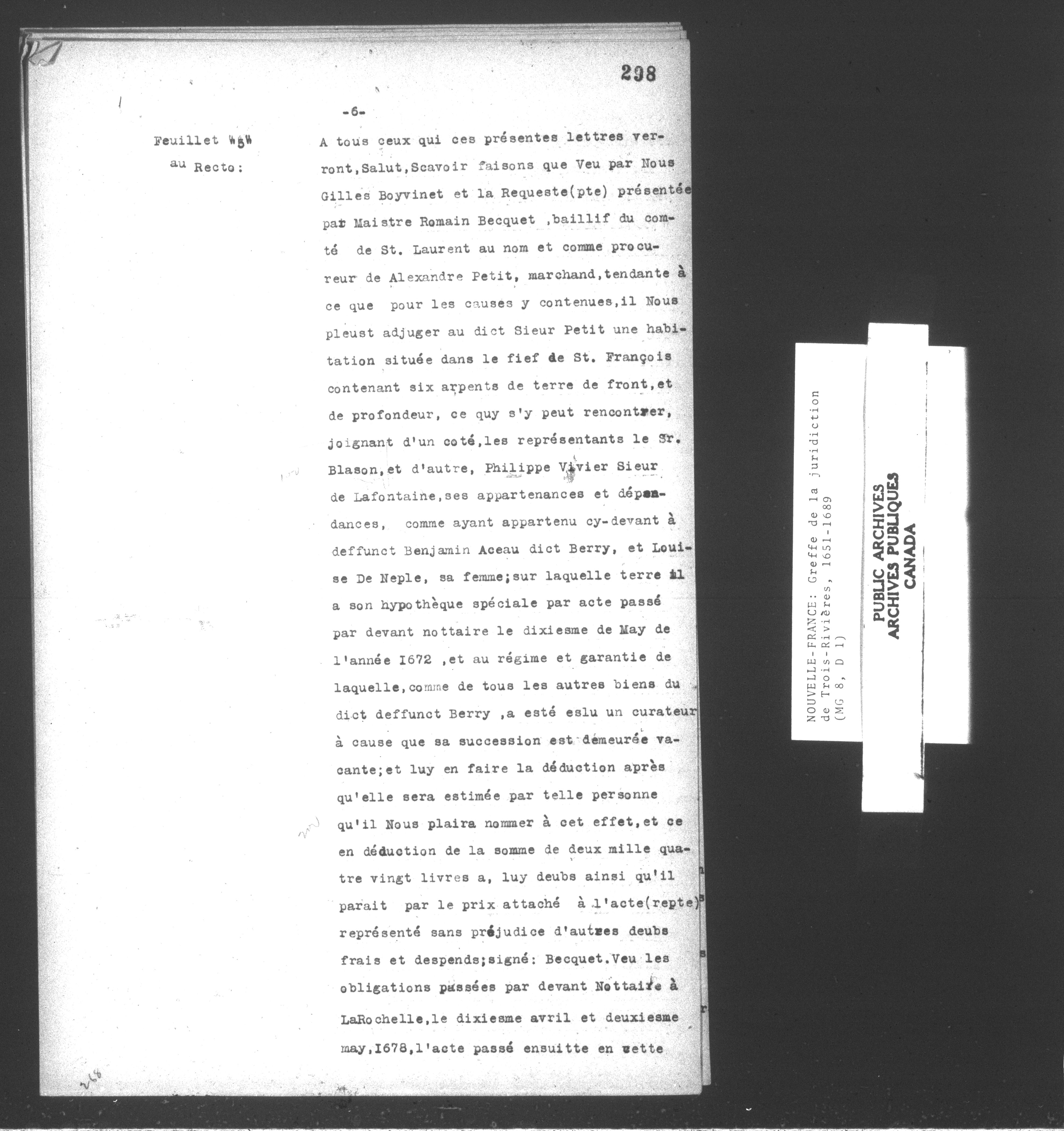 Nouvelle-France,Greffe des juridiction de Trois Rivières : Correspondance officielle - 13994