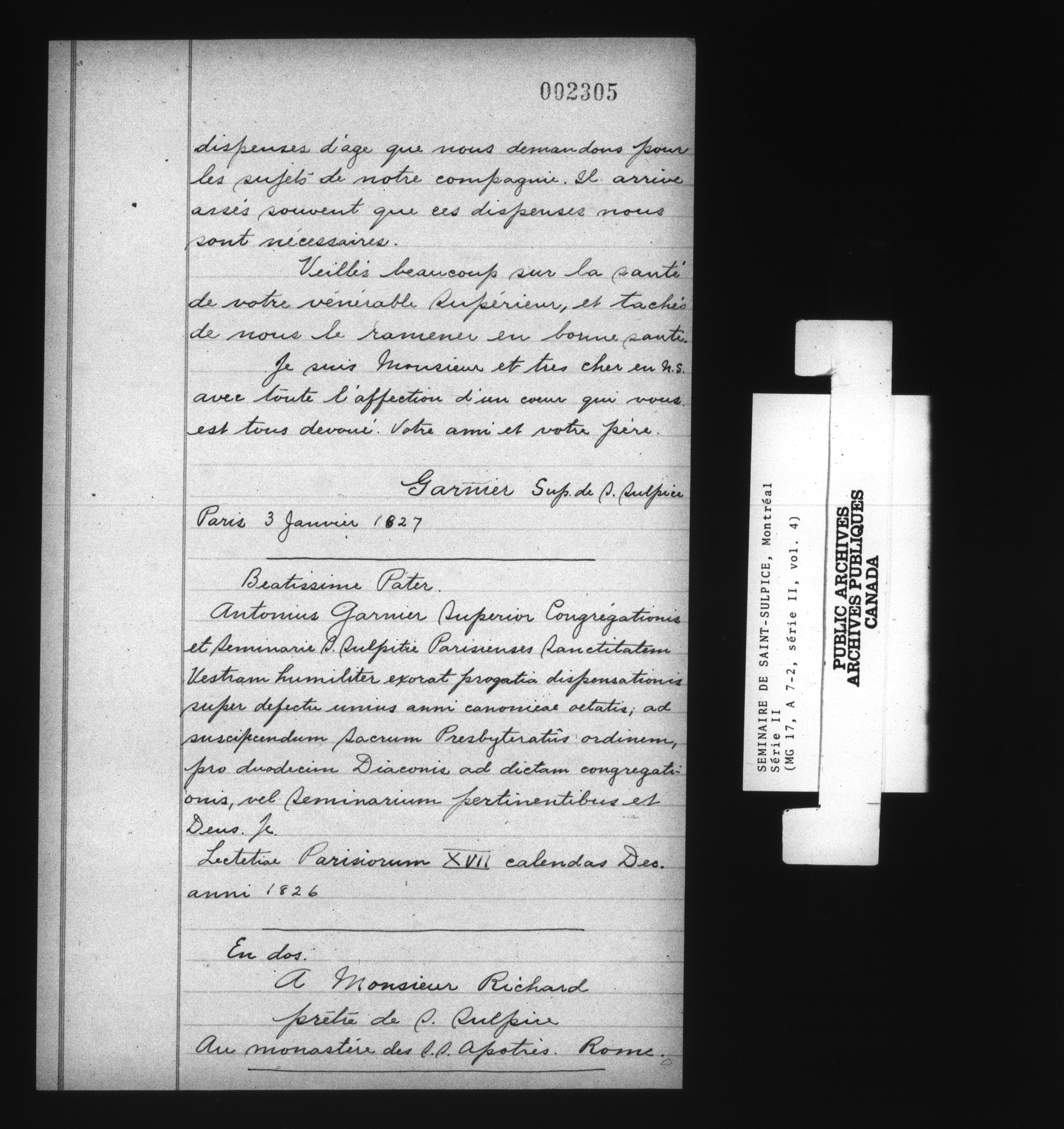 Fonds du Séminaire de Saint-Sulpice, Montréal : série II - 14001