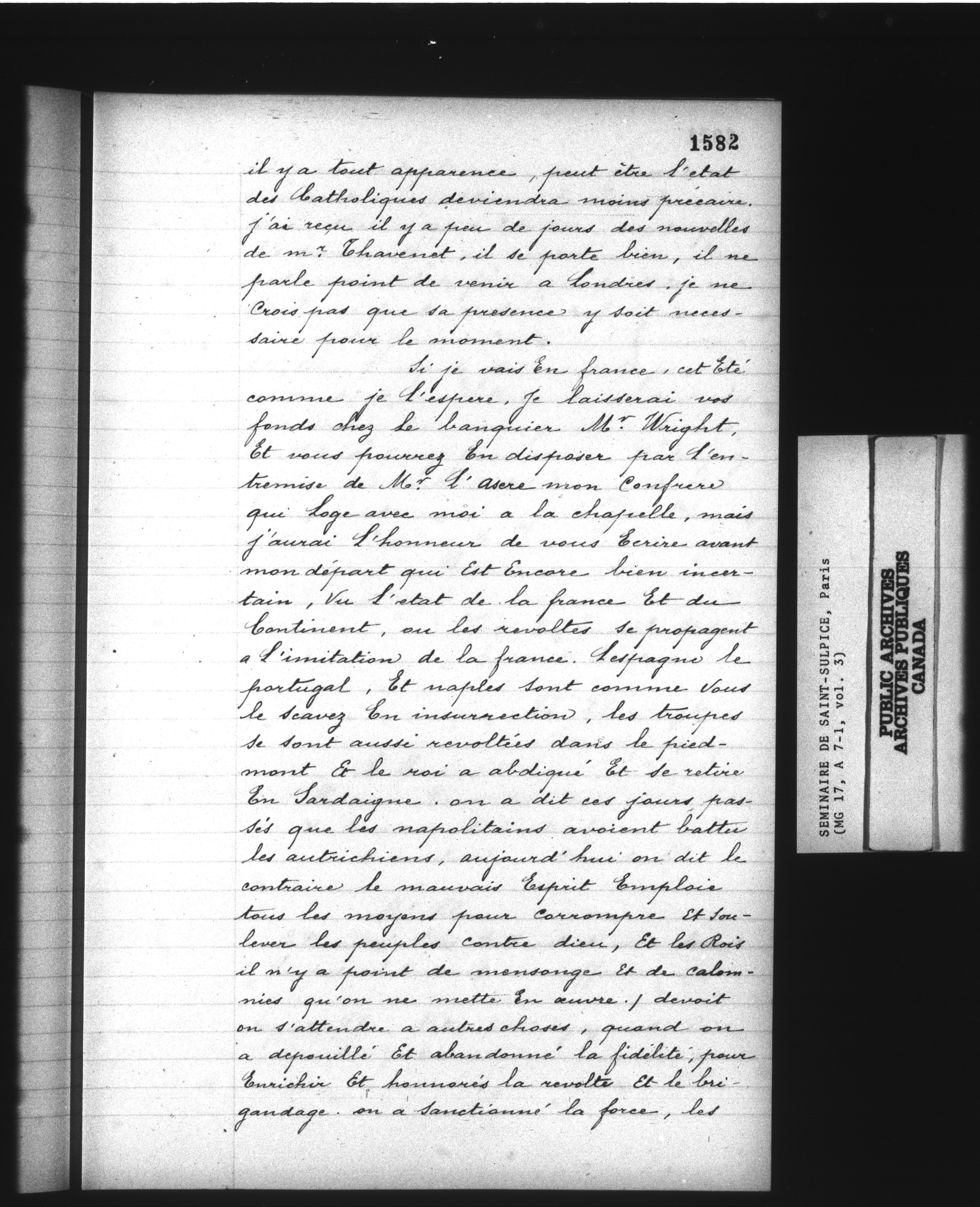 Fonds du Séminaire de Saint-Sulpice, Paris: Documents pour l'histoire de l'Église du Canada : C-14014