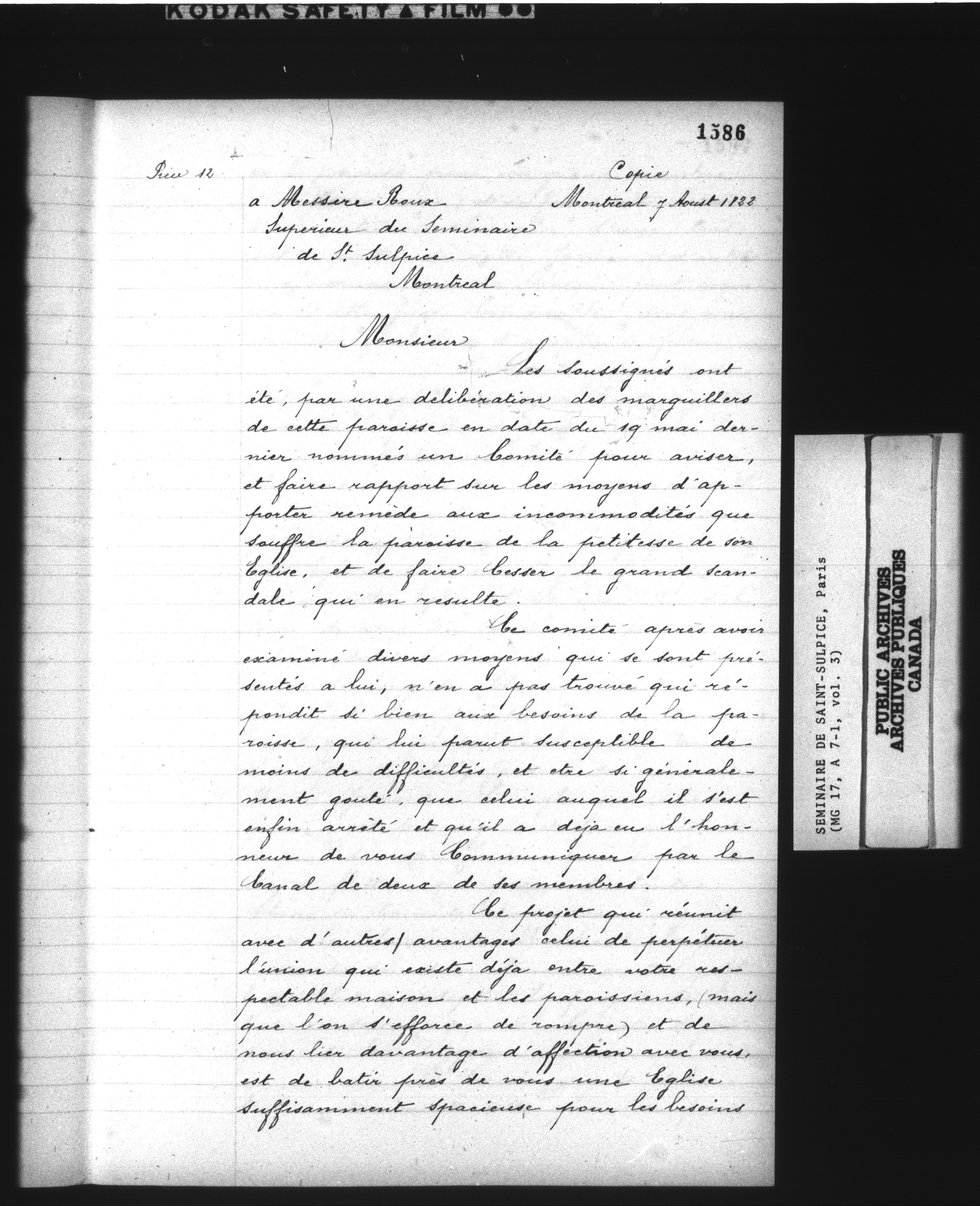 Fonds du Séminaire de Saint-Sulpice, Paris: Documents pour l'histoire de l'Église du Canada : C-14014