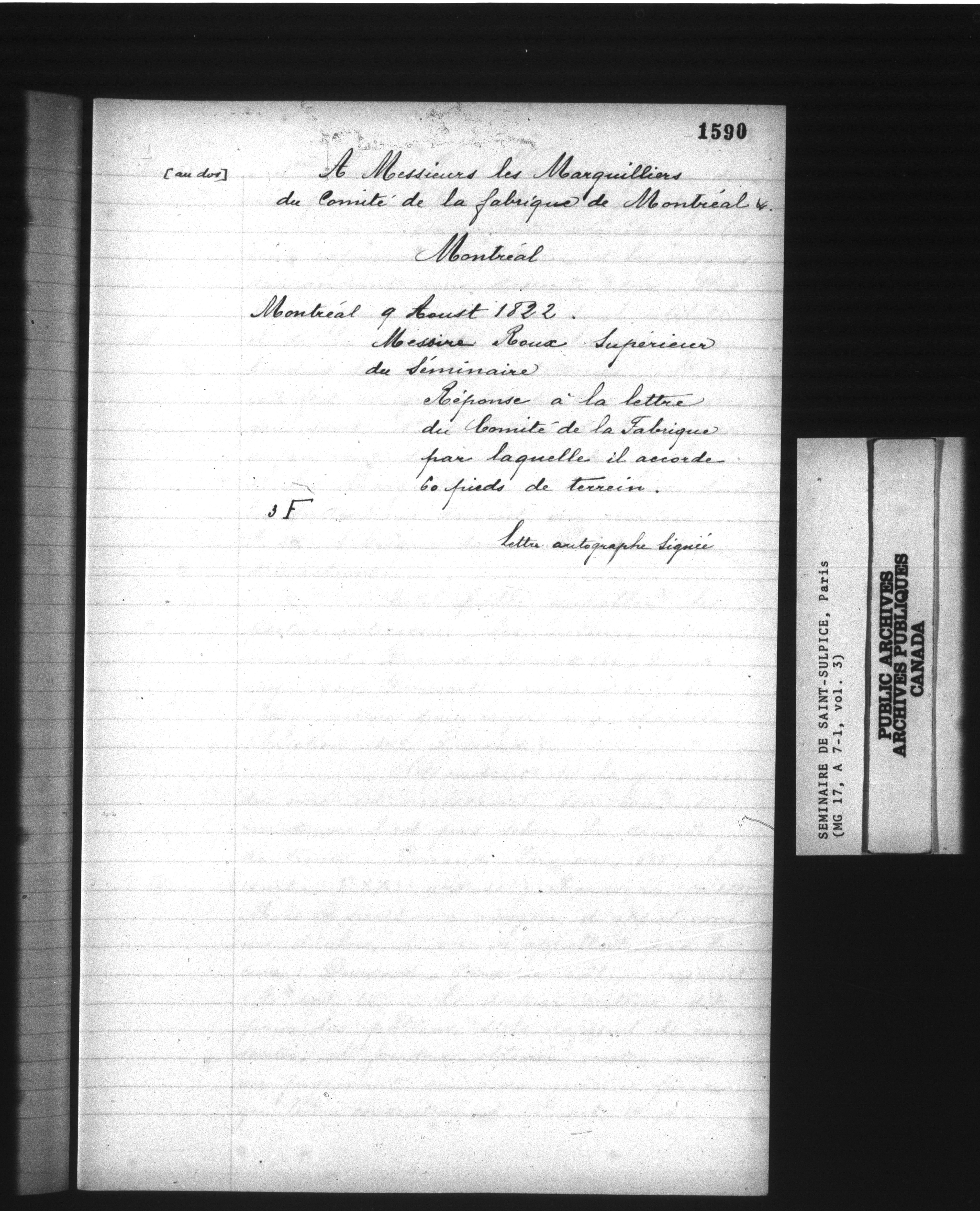 Fonds du Séminaire de Saint-Sulpice, Paris: Documents pour l'histoire de l'Église du Canada : C-14014