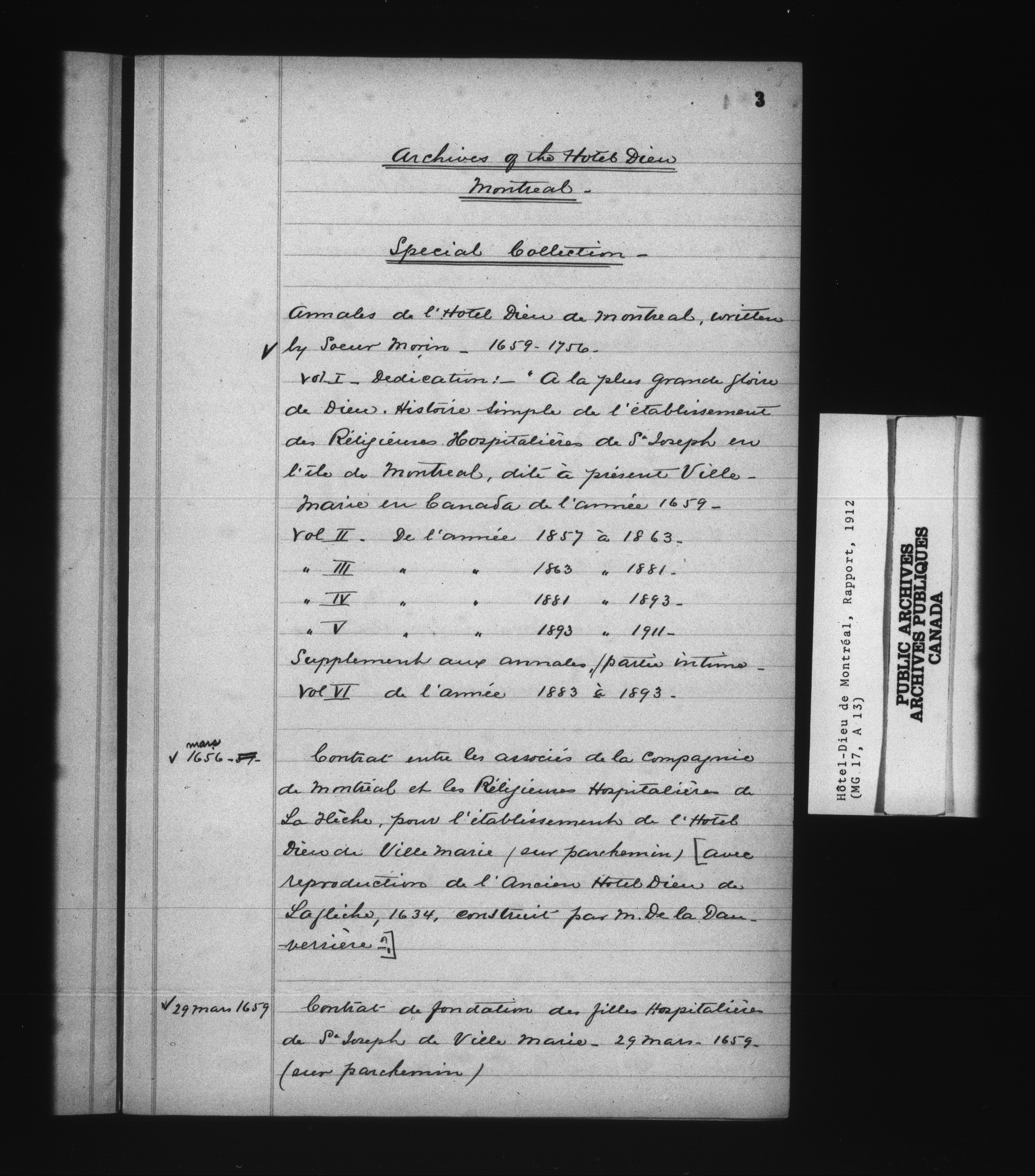 Fonds de l'hôtel-Dieu de Québec : Notes historiques - 14017