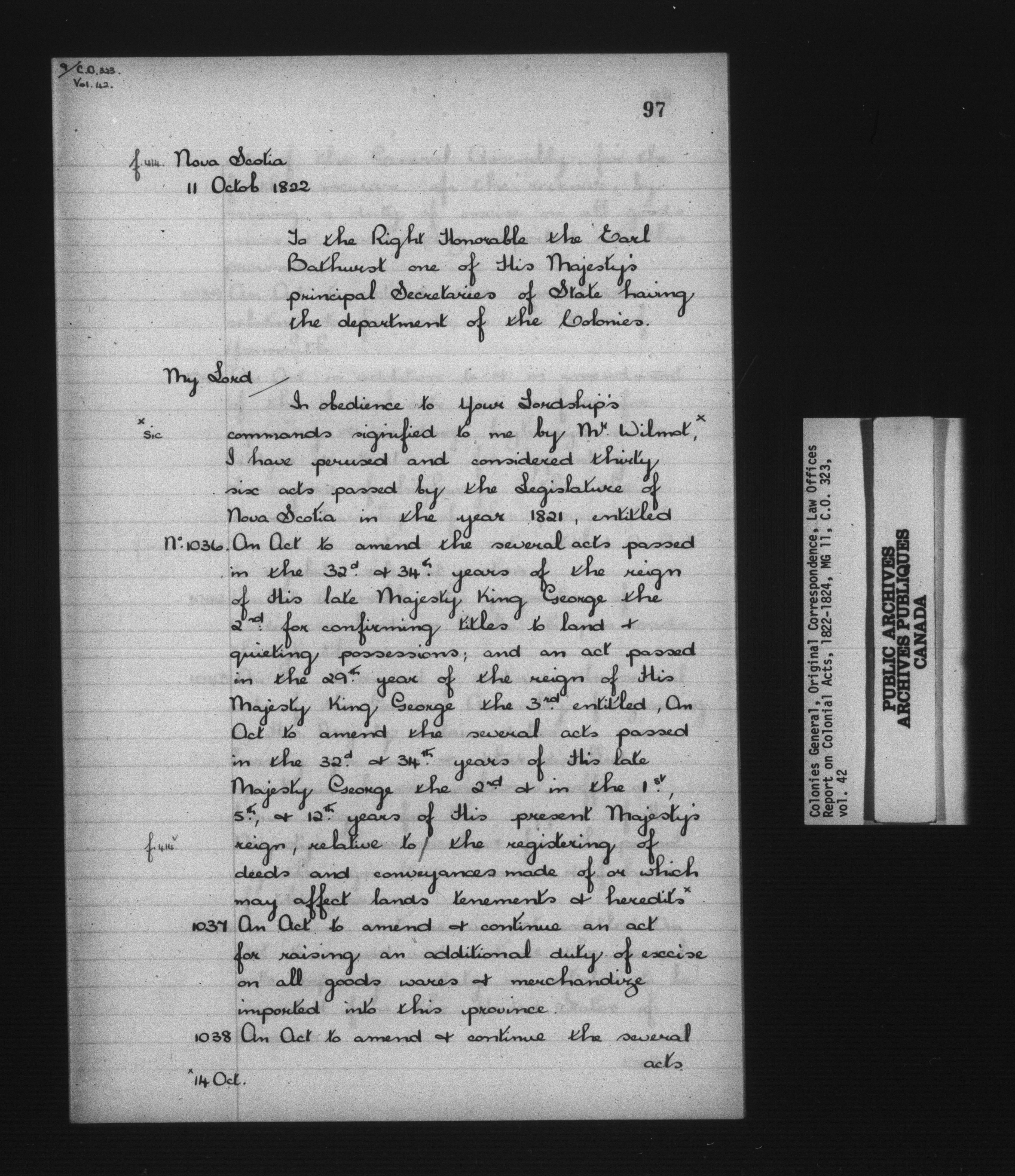 Colonies General, Original Correspondence - 14022