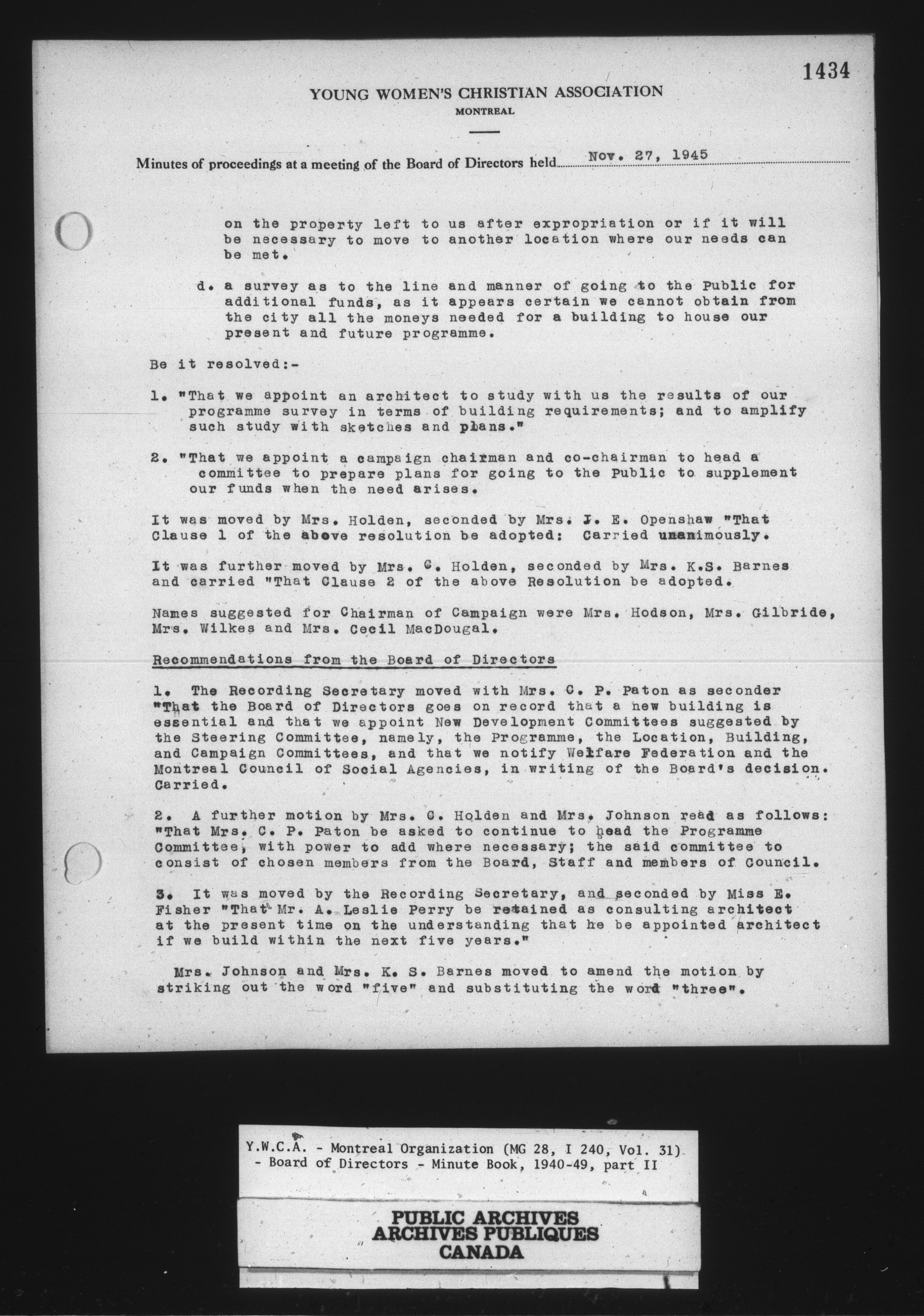 Montreal Young Women's Christian Association fonds - 14029