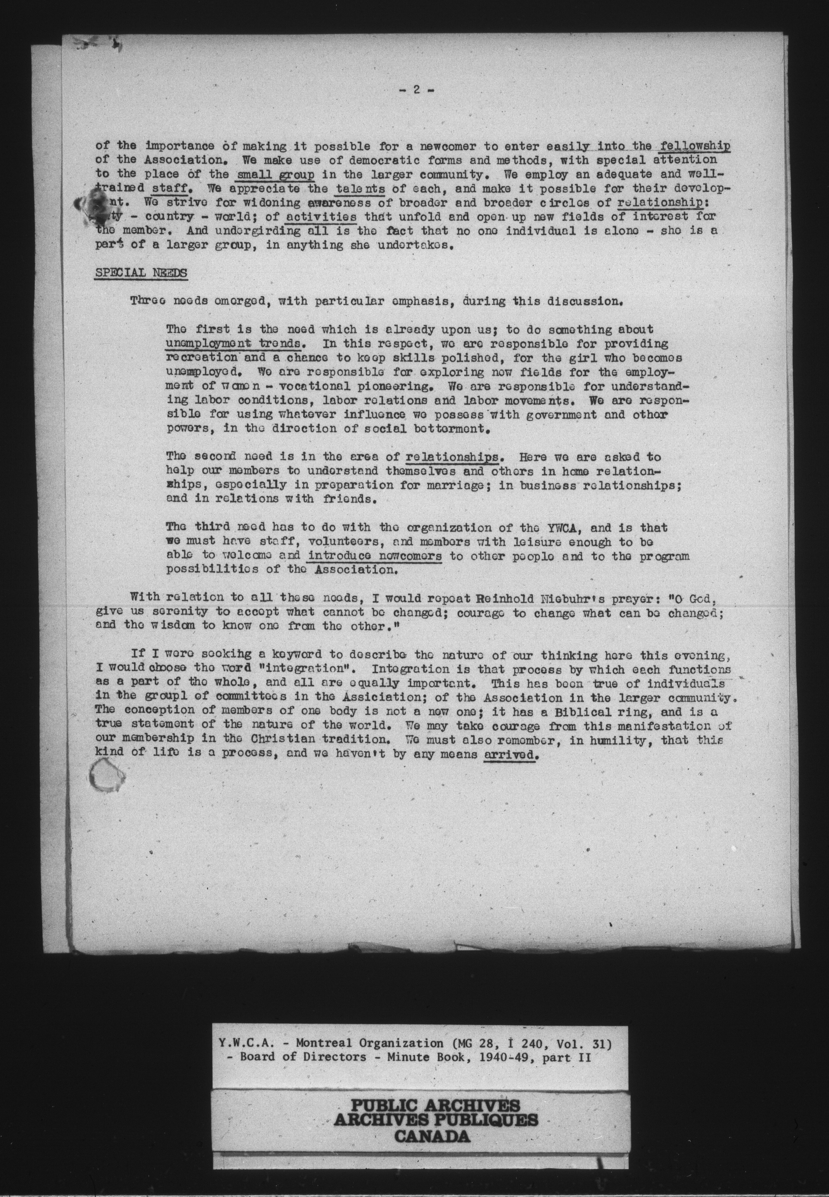 Montreal Young Women's Christian Association fonds - 14029