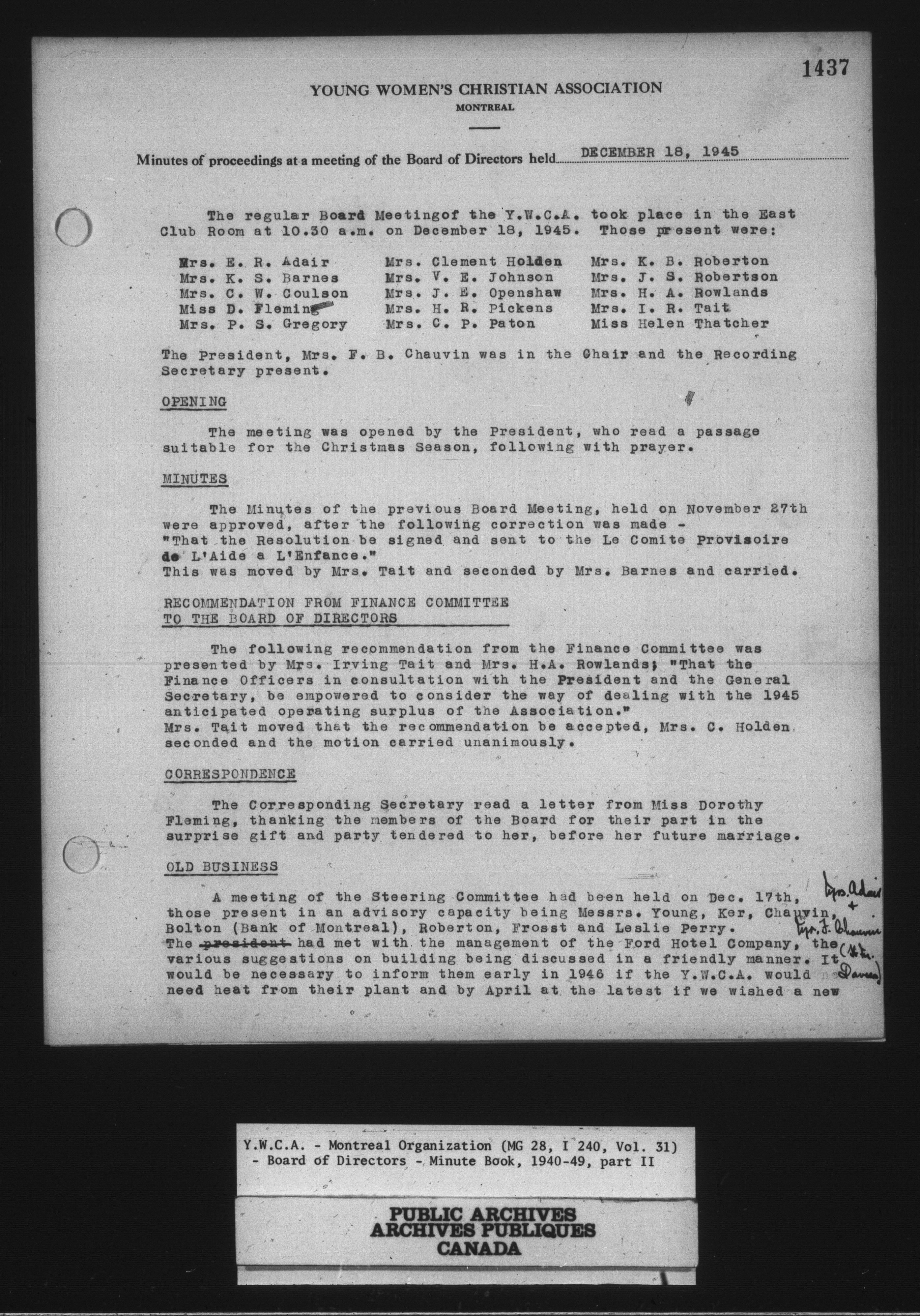 Montreal Young Women's Christian Association fonds - 14029