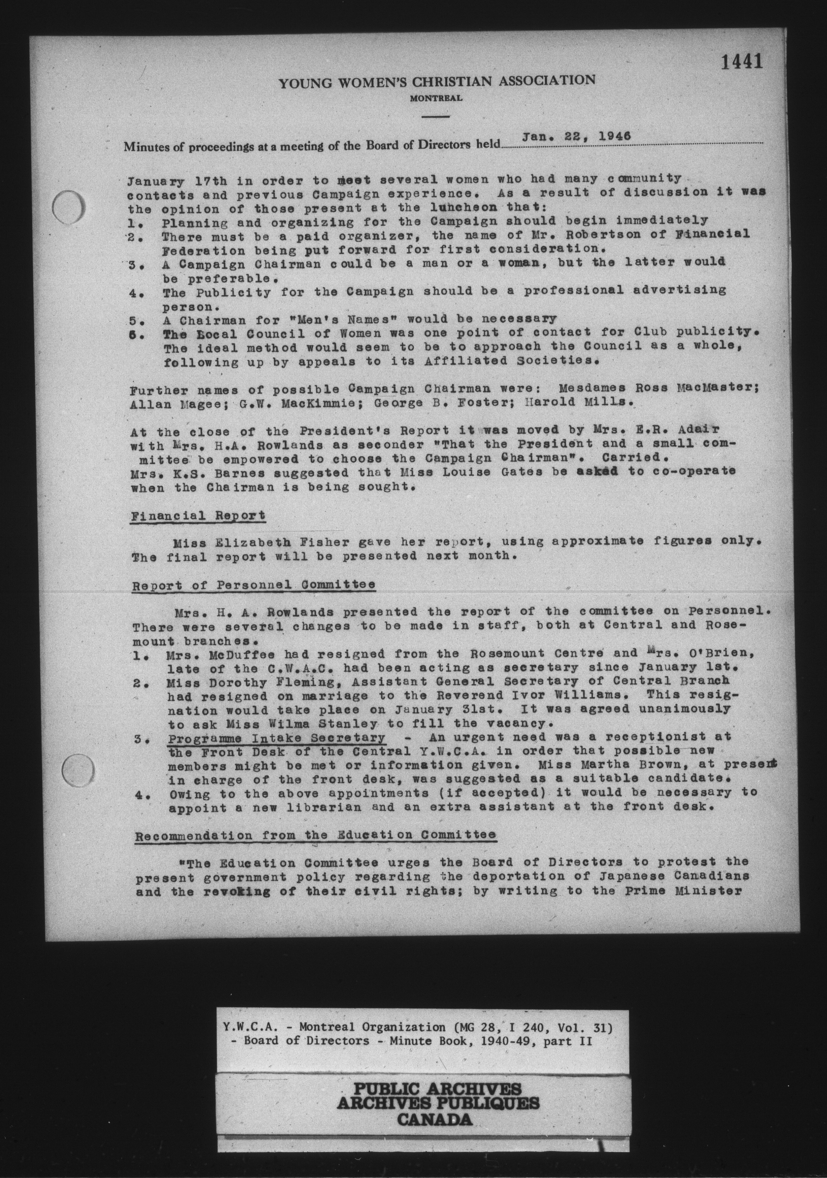 Montreal Young Women's Christian Association fonds - 14029