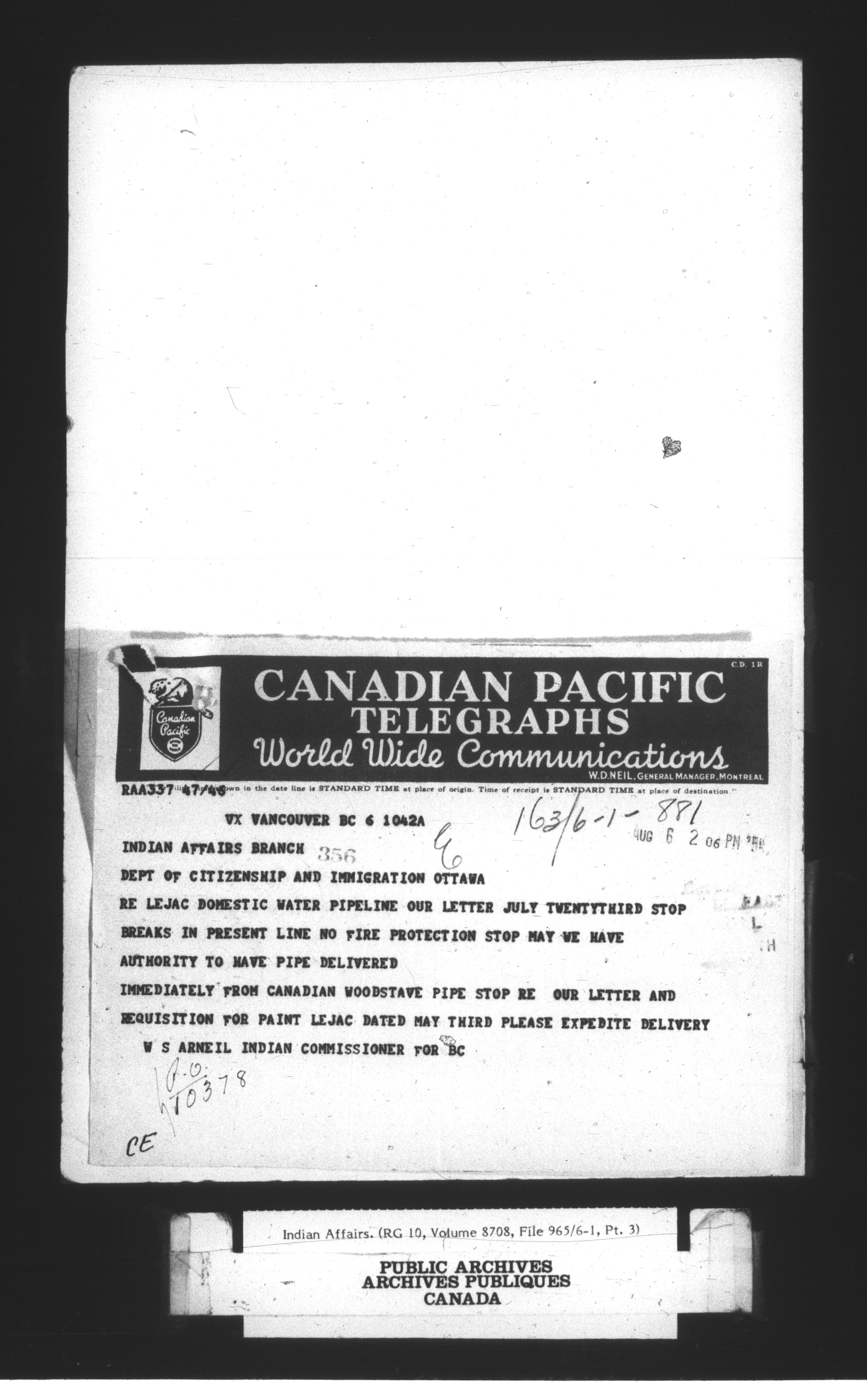 Indian and Inuit Affairs Program : Modified duplex numeric system : C-14167