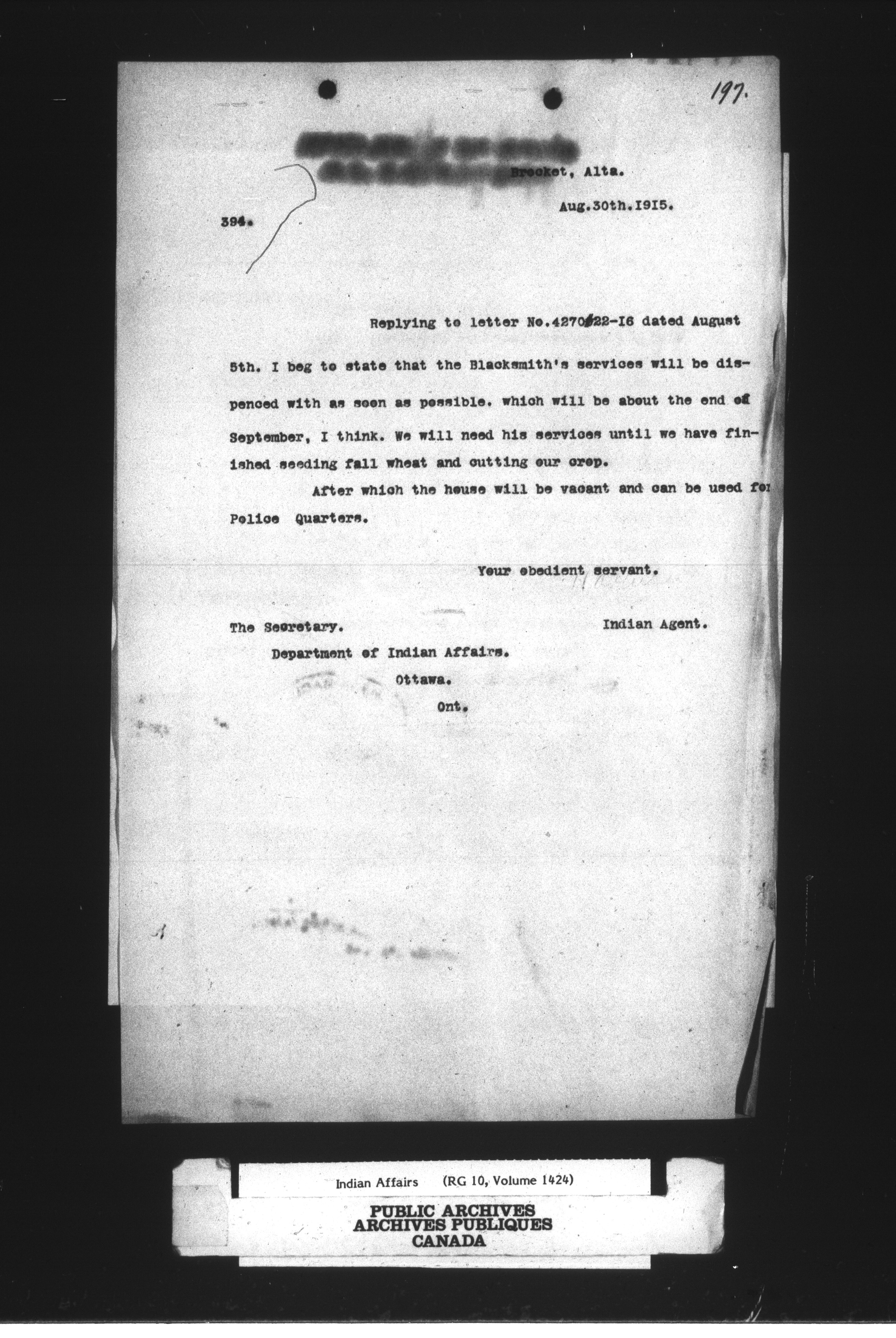 Department of Indian Affairs : Peigan Agency - 14256