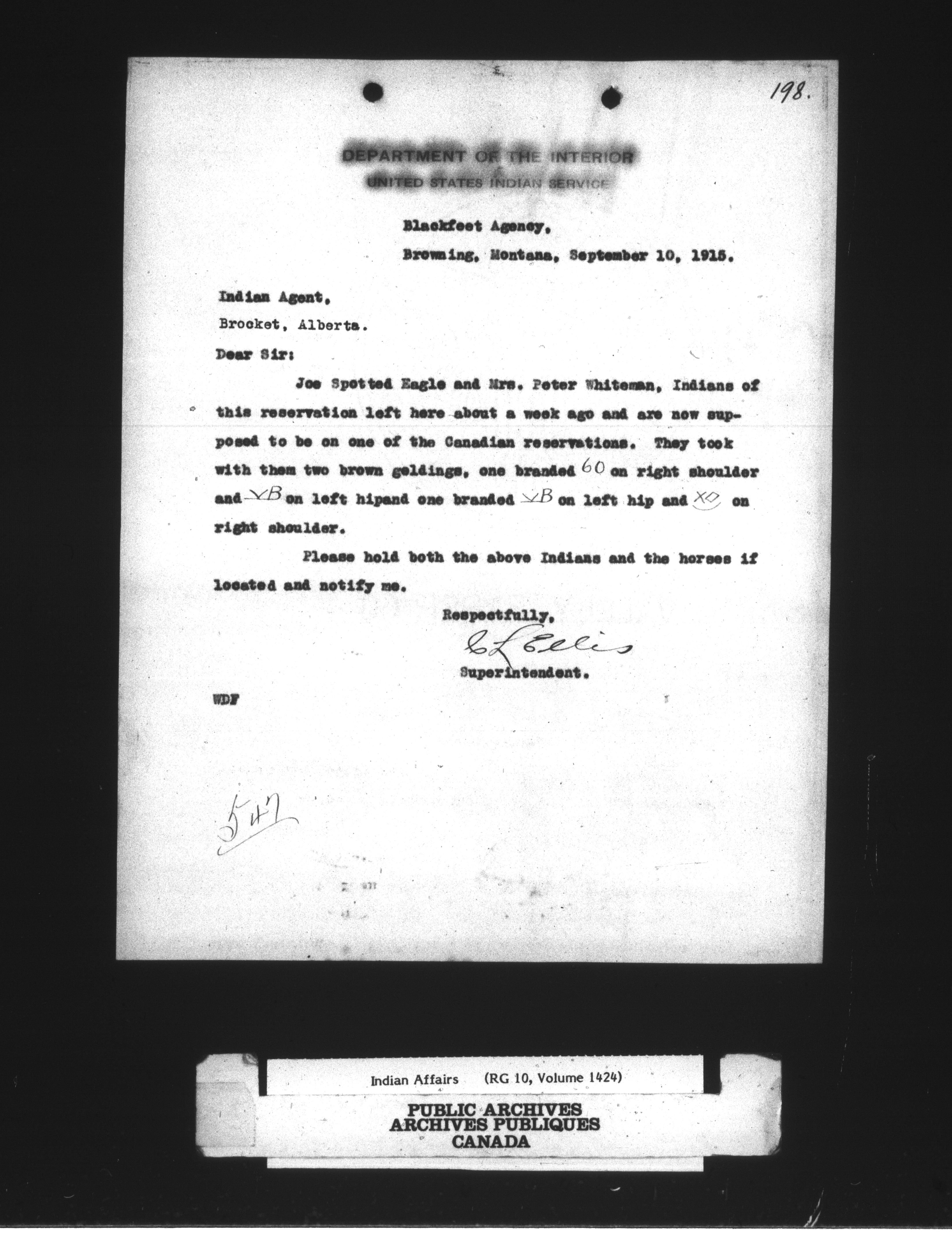 Department of Indian Affairs : Peigan Agency - 14256
