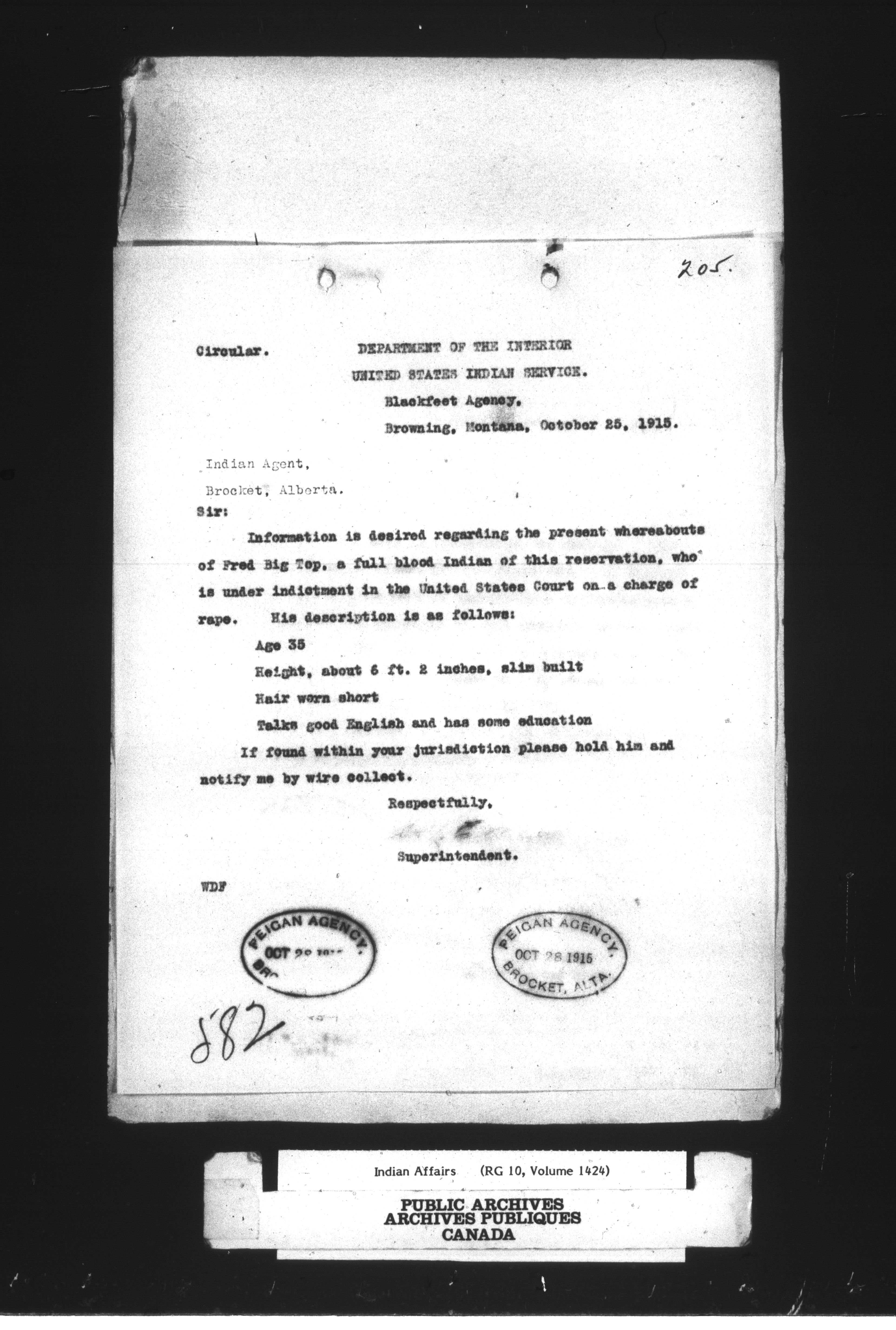 Department of Indian Affairs : Peigan Agency - 14256