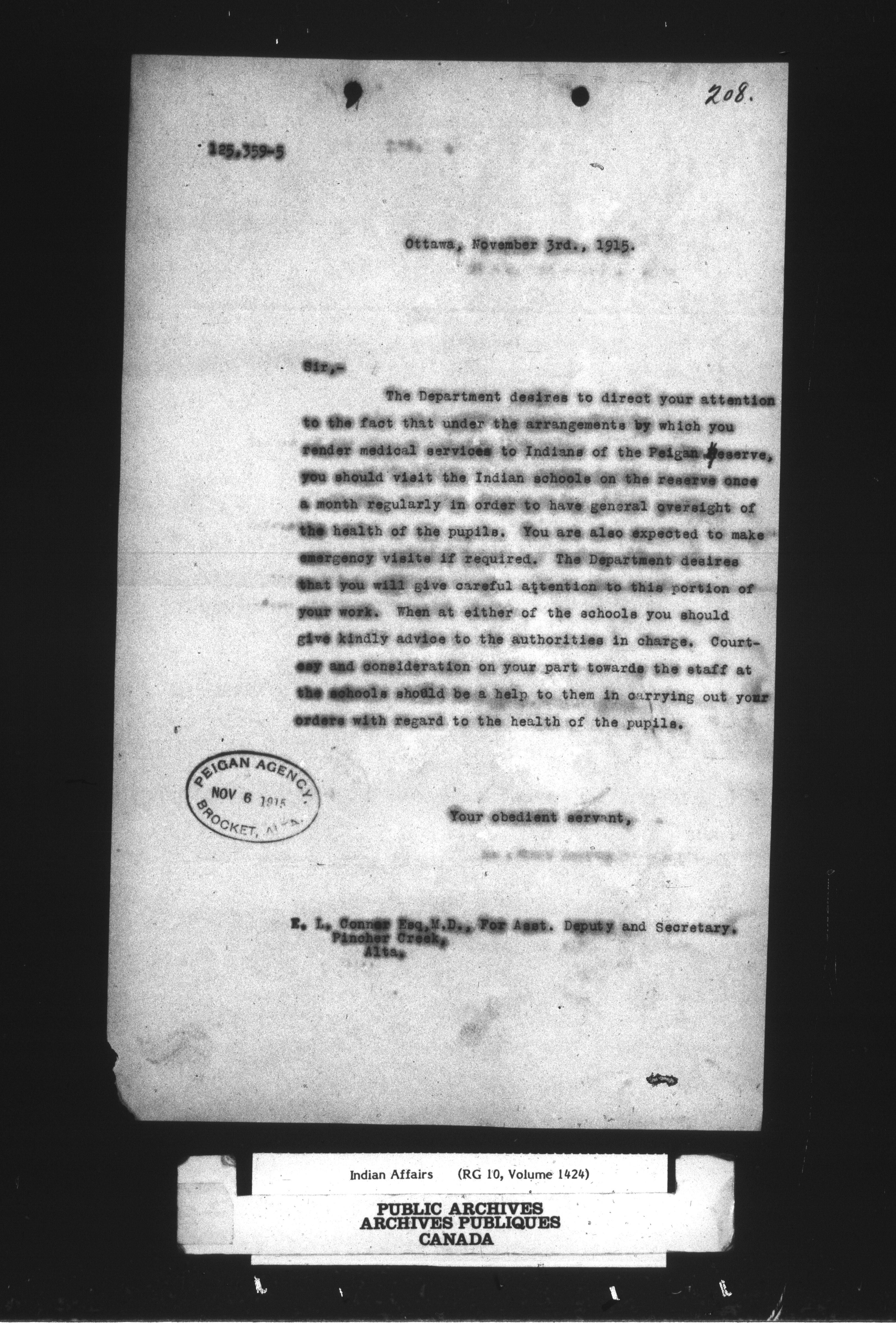 Department of Indian Affairs : Peigan Agency - 14256