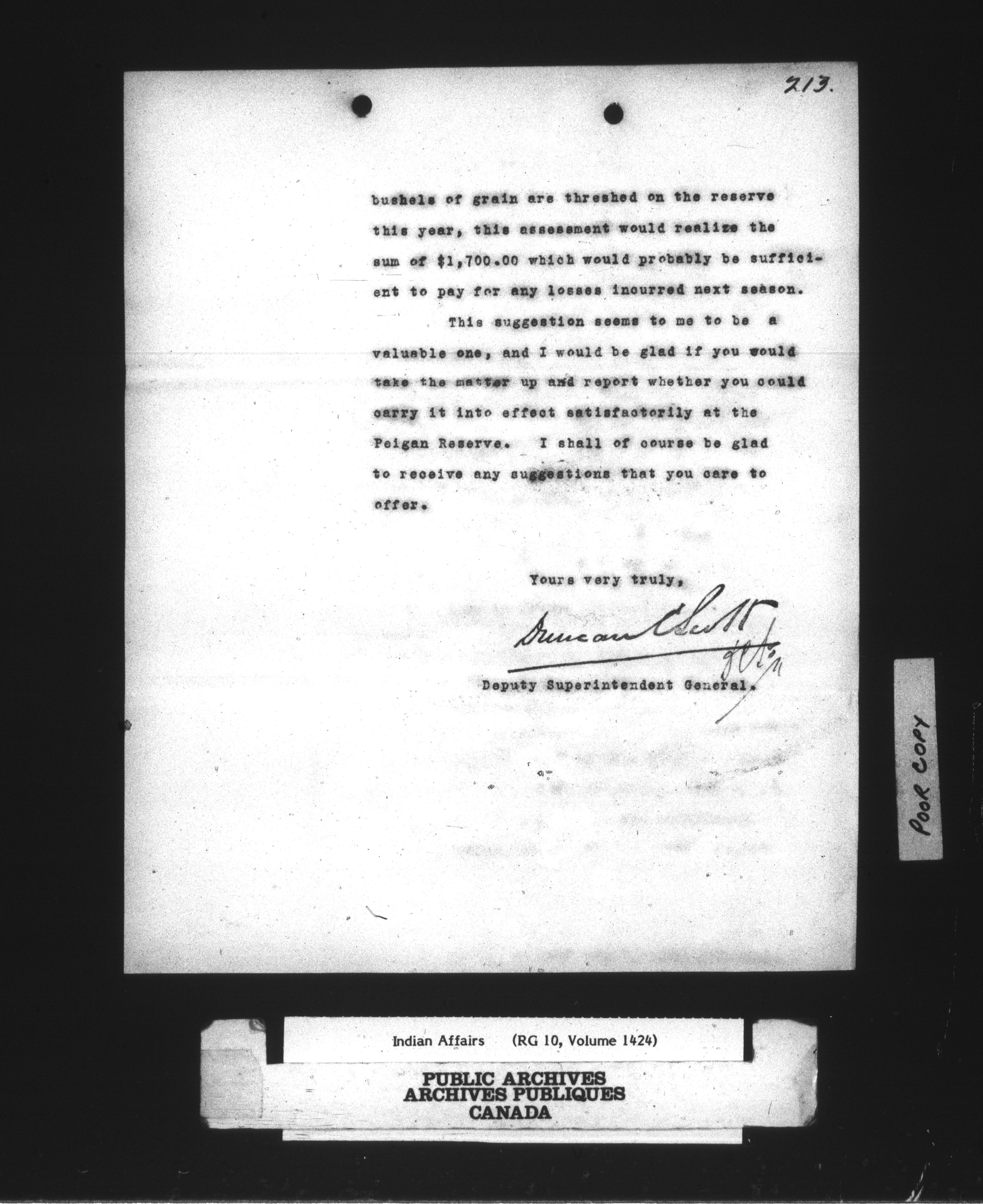 Department of Indian Affairs : Peigan Agency - 14256