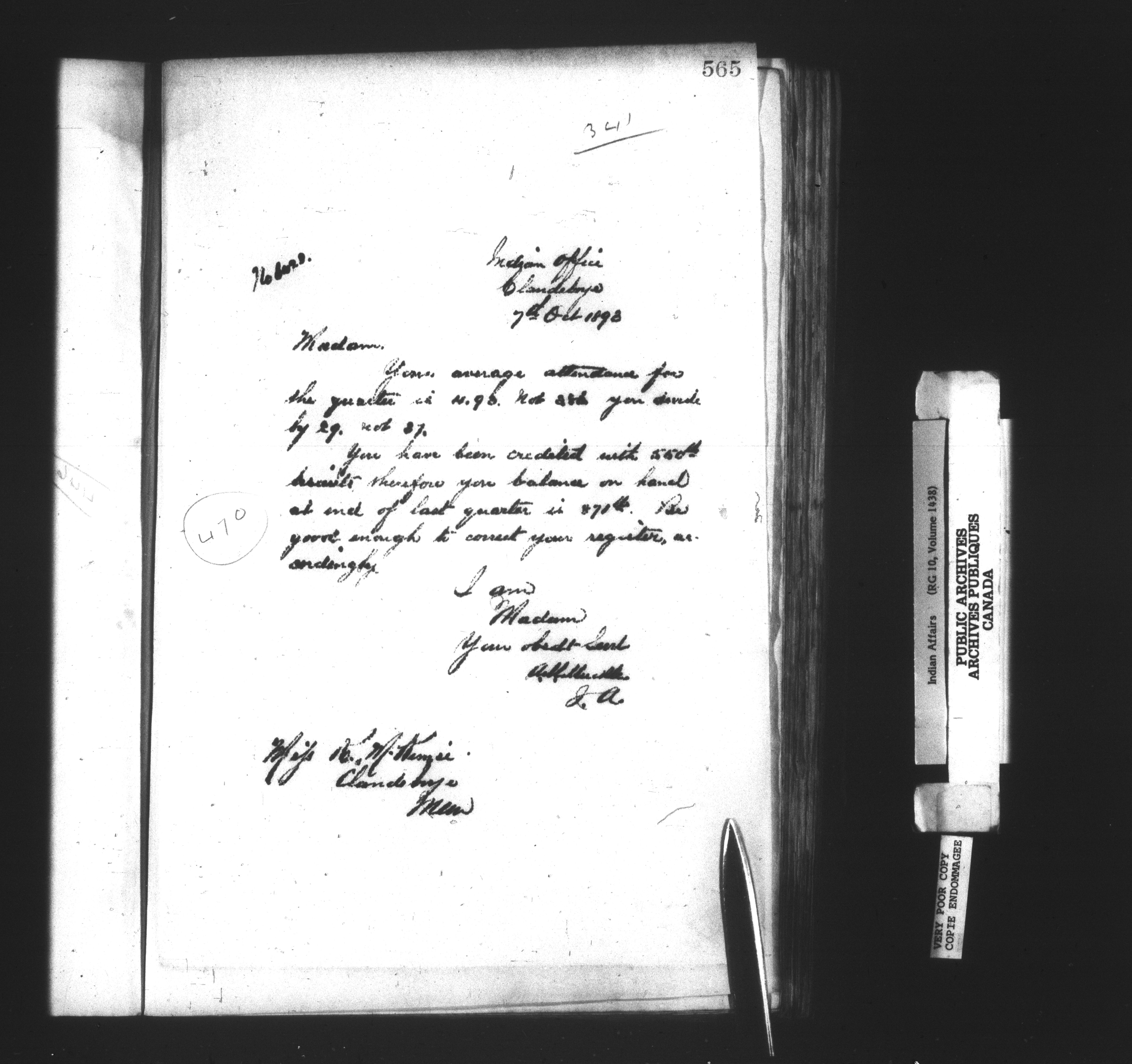 Department of Indian Affairs : Clandeboye Agency - 14261