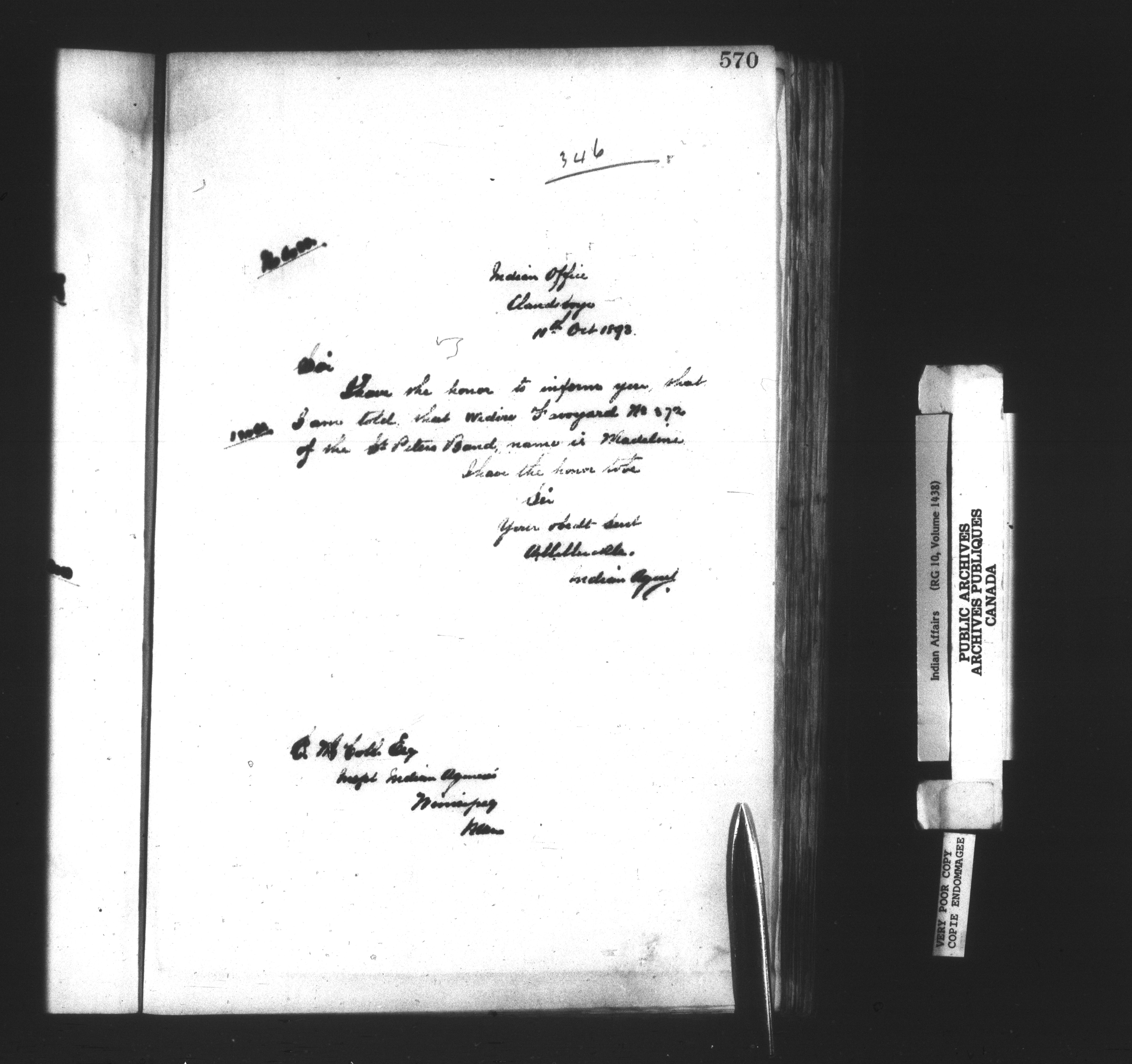 Department of Indian Affairs : Clandeboye Agency - 14261
