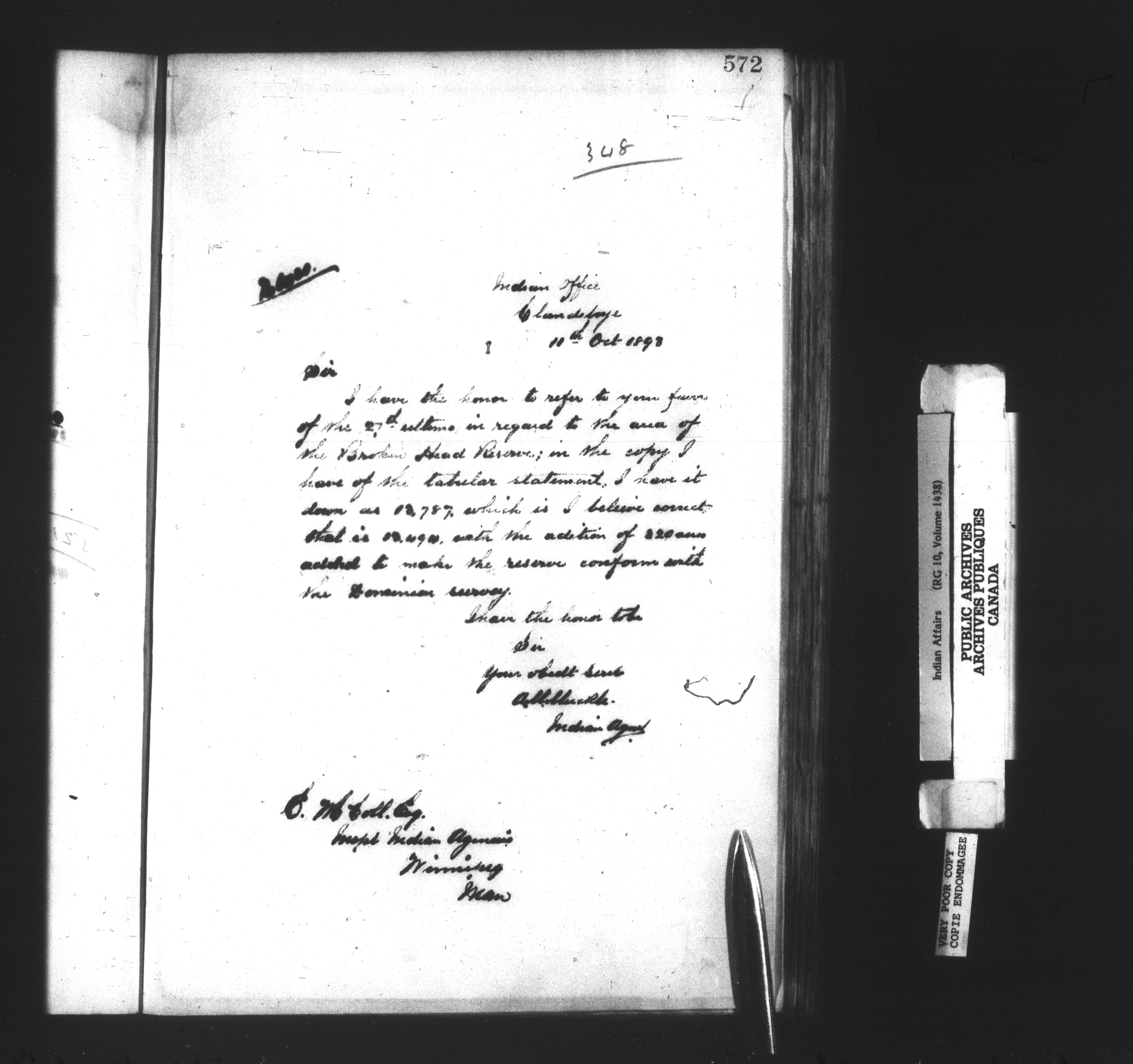 Department of Indian Affairs : Clandeboye Agency - 14261
