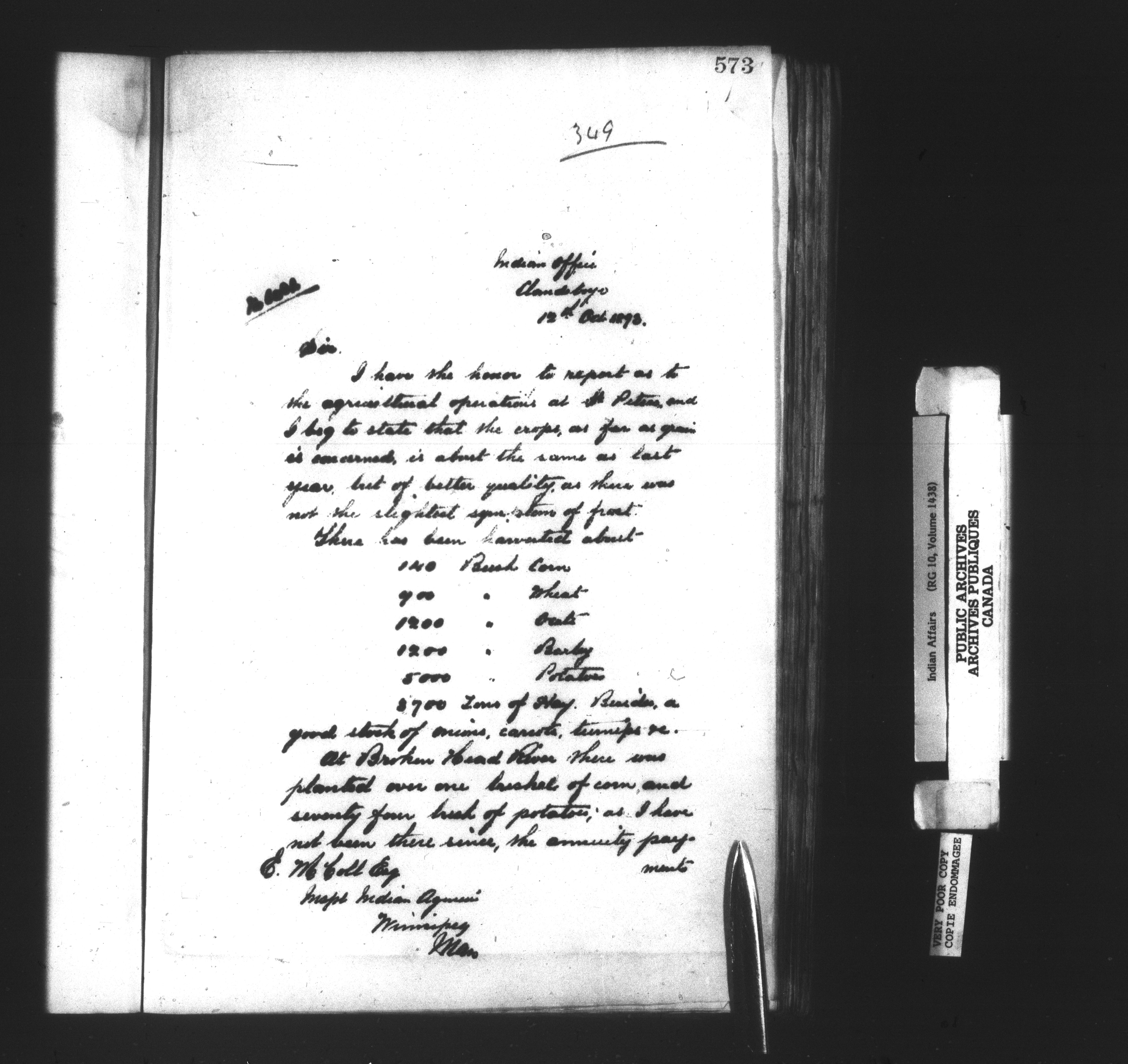Department of Indian Affairs : Clandeboye Agency - 14261