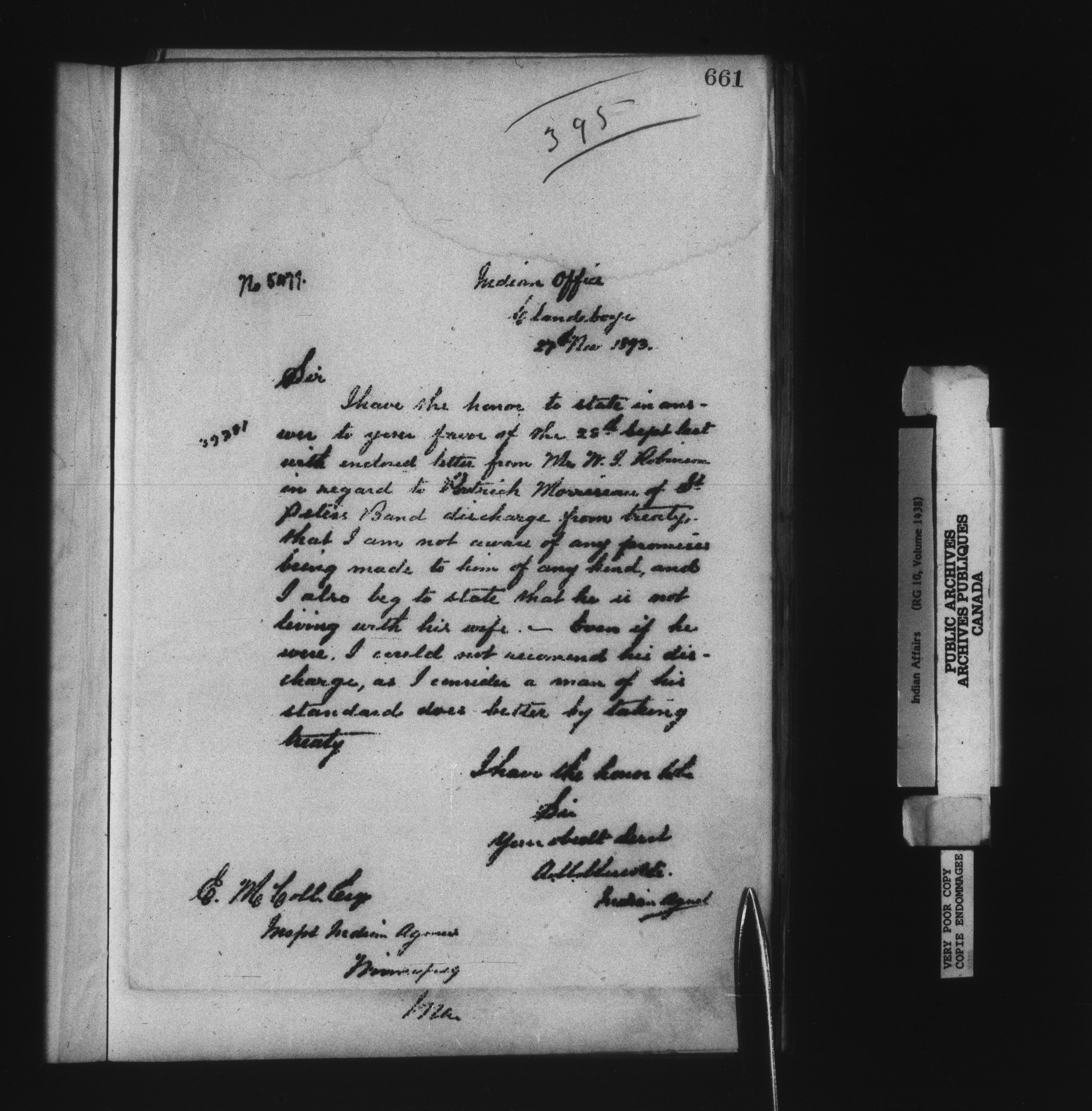Department of Indian Affairs : Clandeboye Agency : C-14262