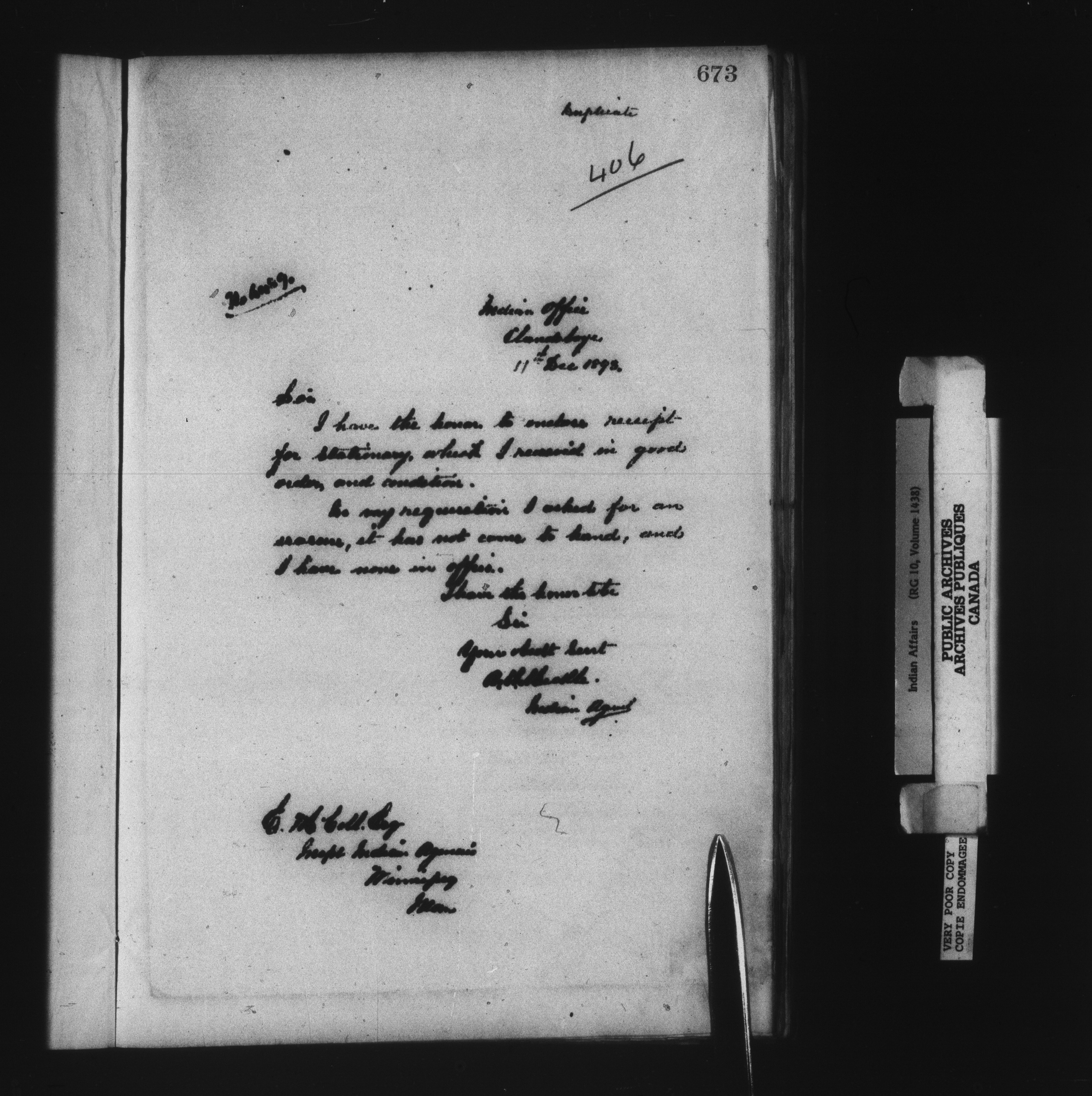 Department of Indian Affairs : Clandeboye Agency : C-14262