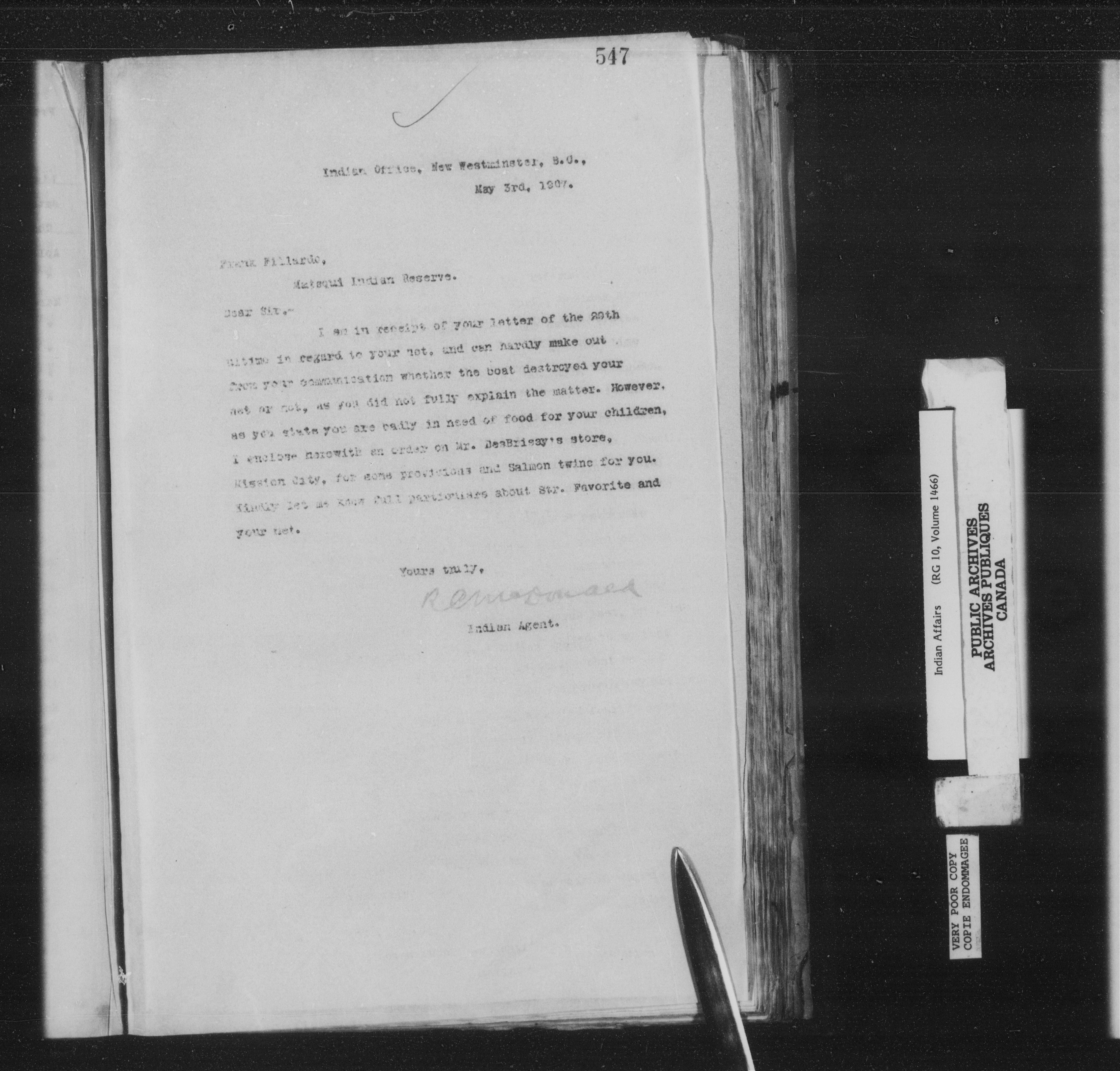 Department of Indian Affairs : New Westminster Agency - 14271