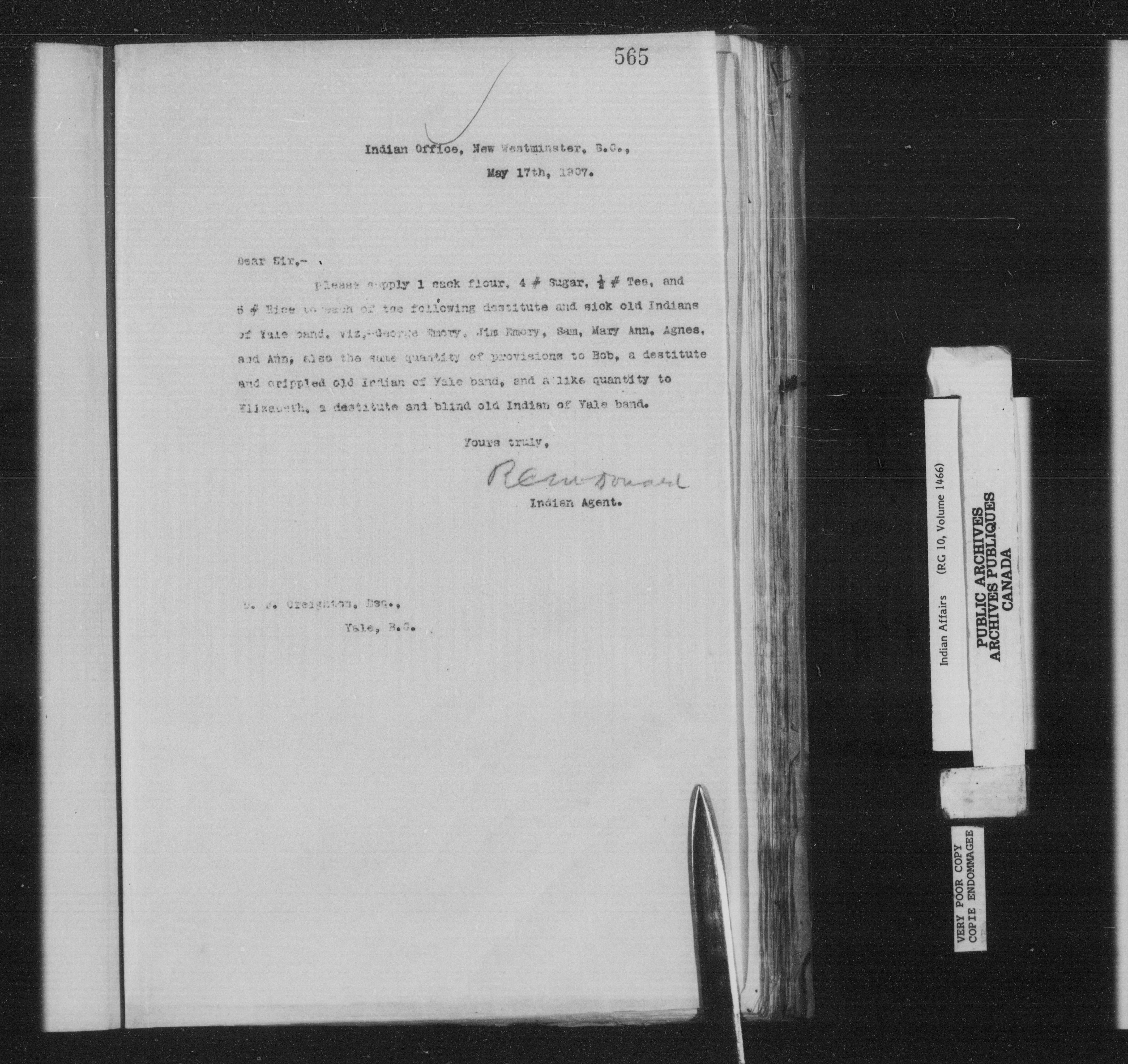 Department of Indian Affairs : New Westminster Agency - 14271