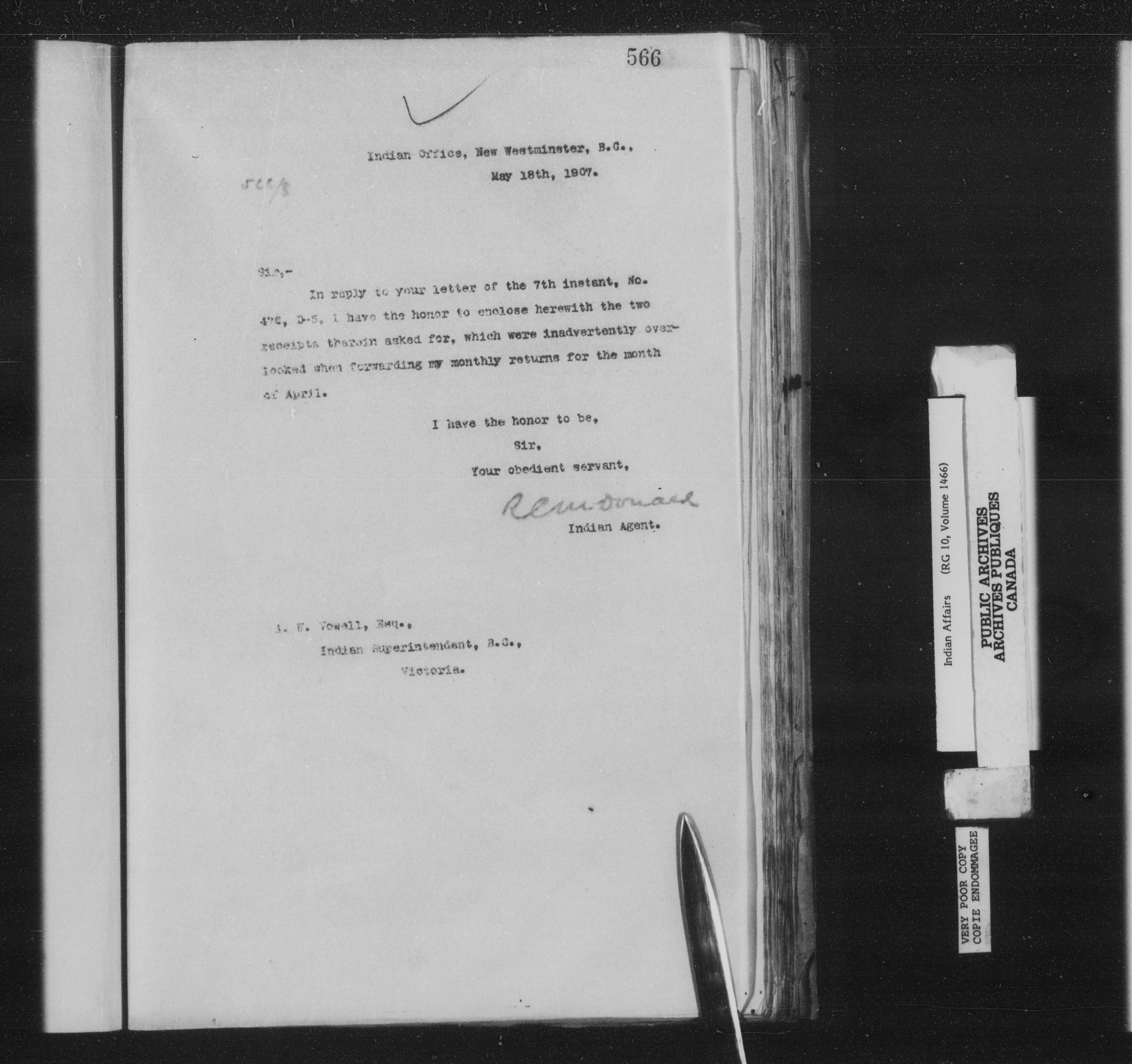 Department of Indian Affairs : New Westminster Agency - 14271