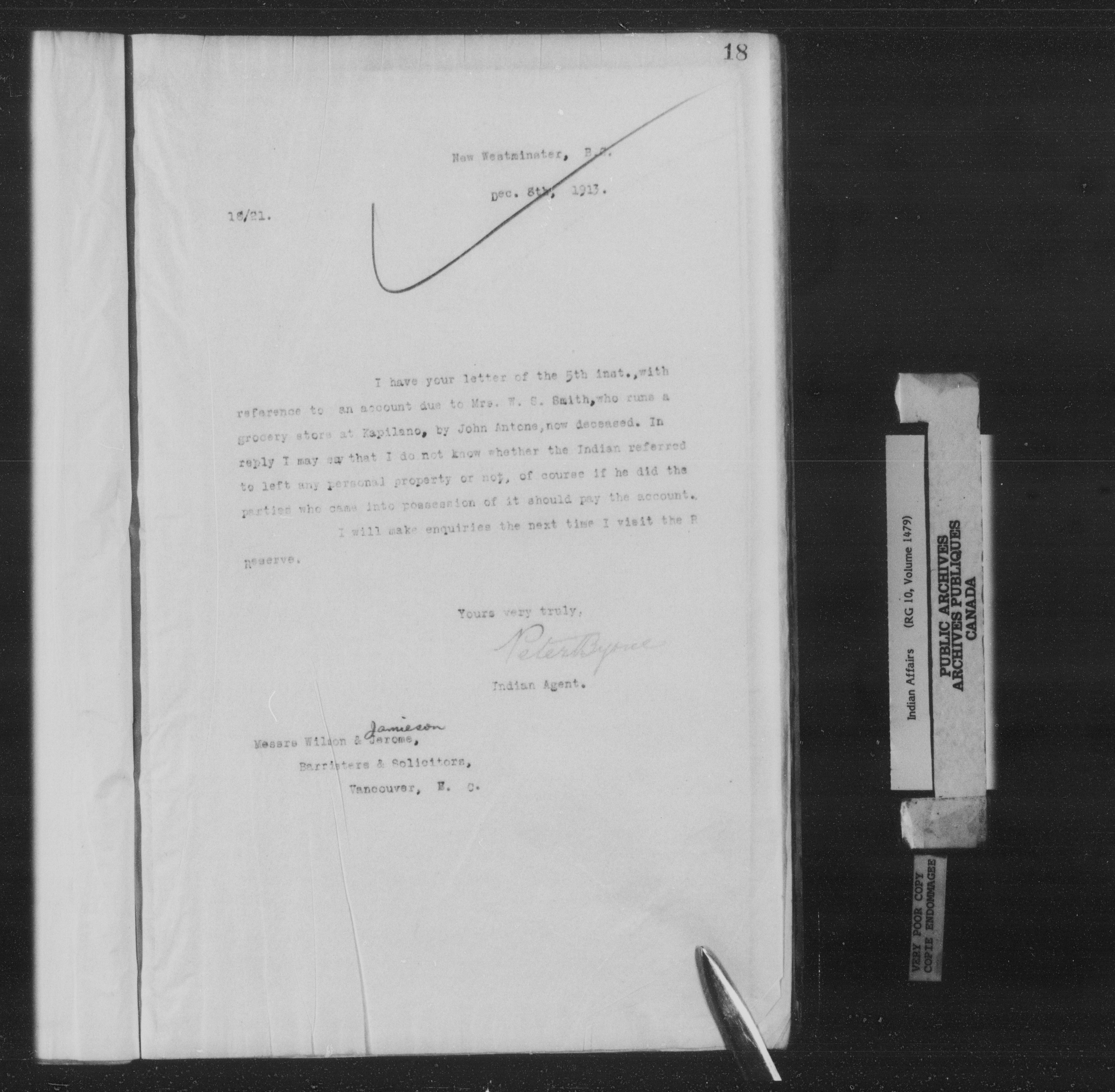 Department of Indian Affairs : New Westminster Agency : C-14276