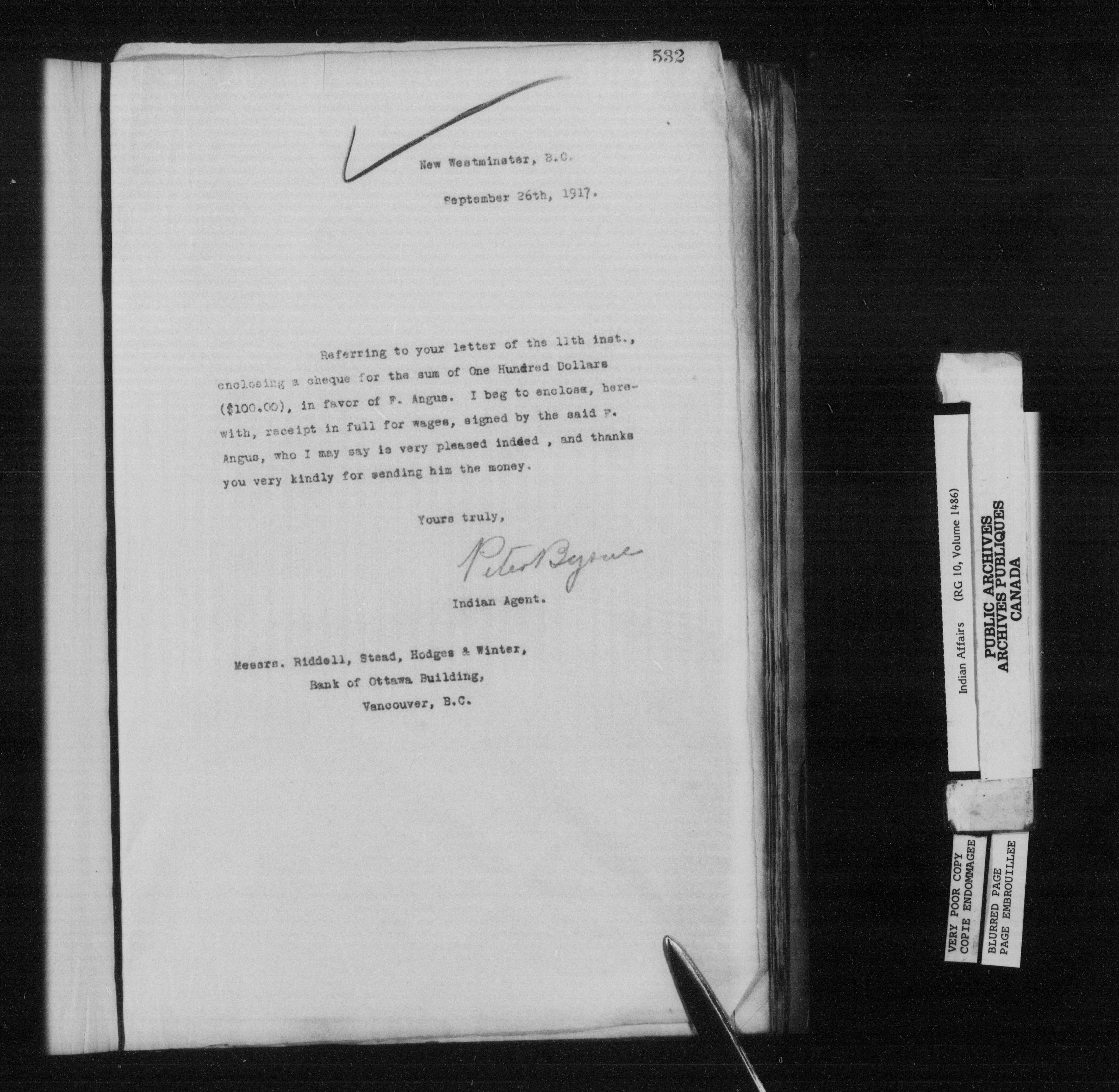 Department of Indian Affairs : New Westminster Agency : C-14279