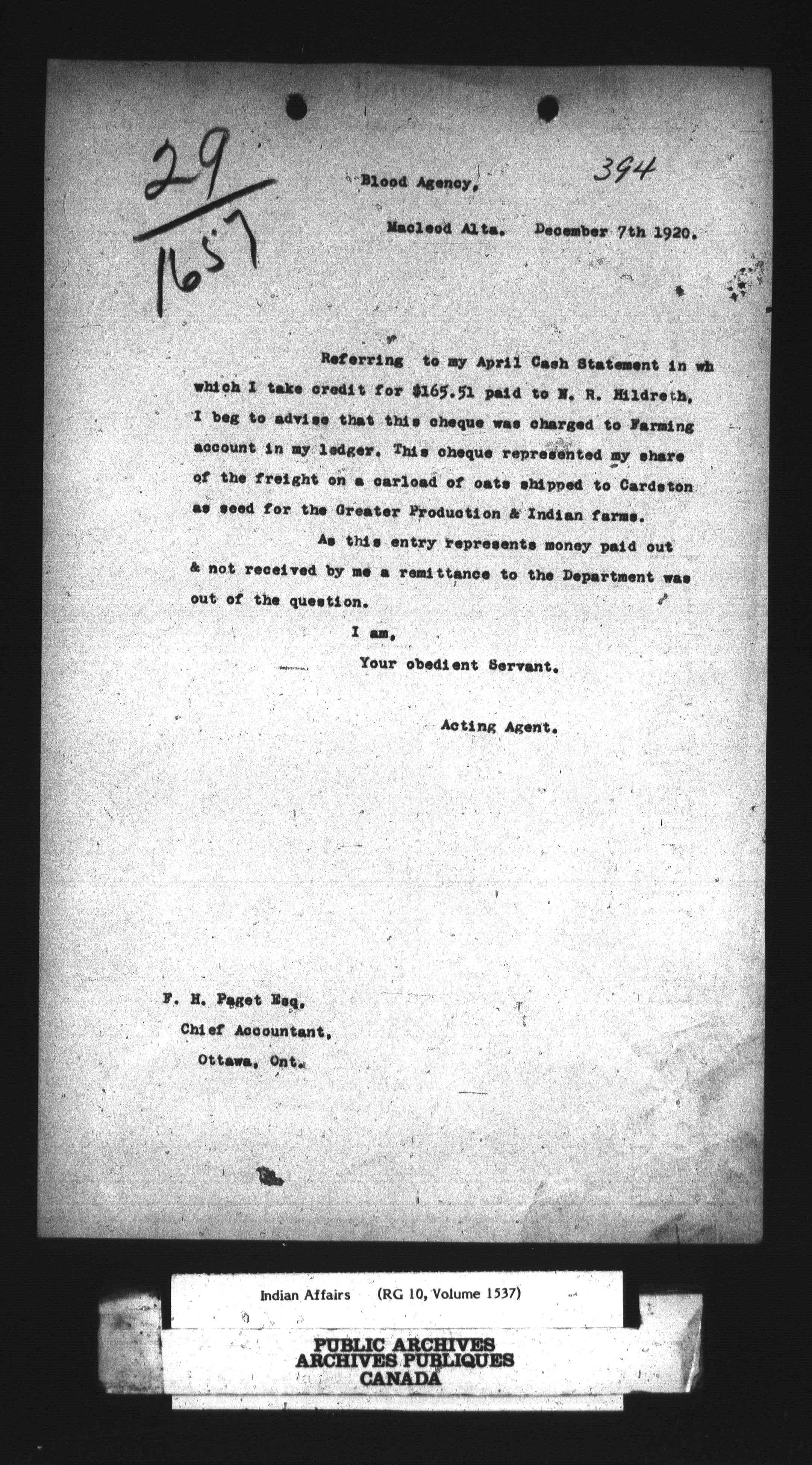 Department of Indian Affairs : Caradoc Agency : C-14297
