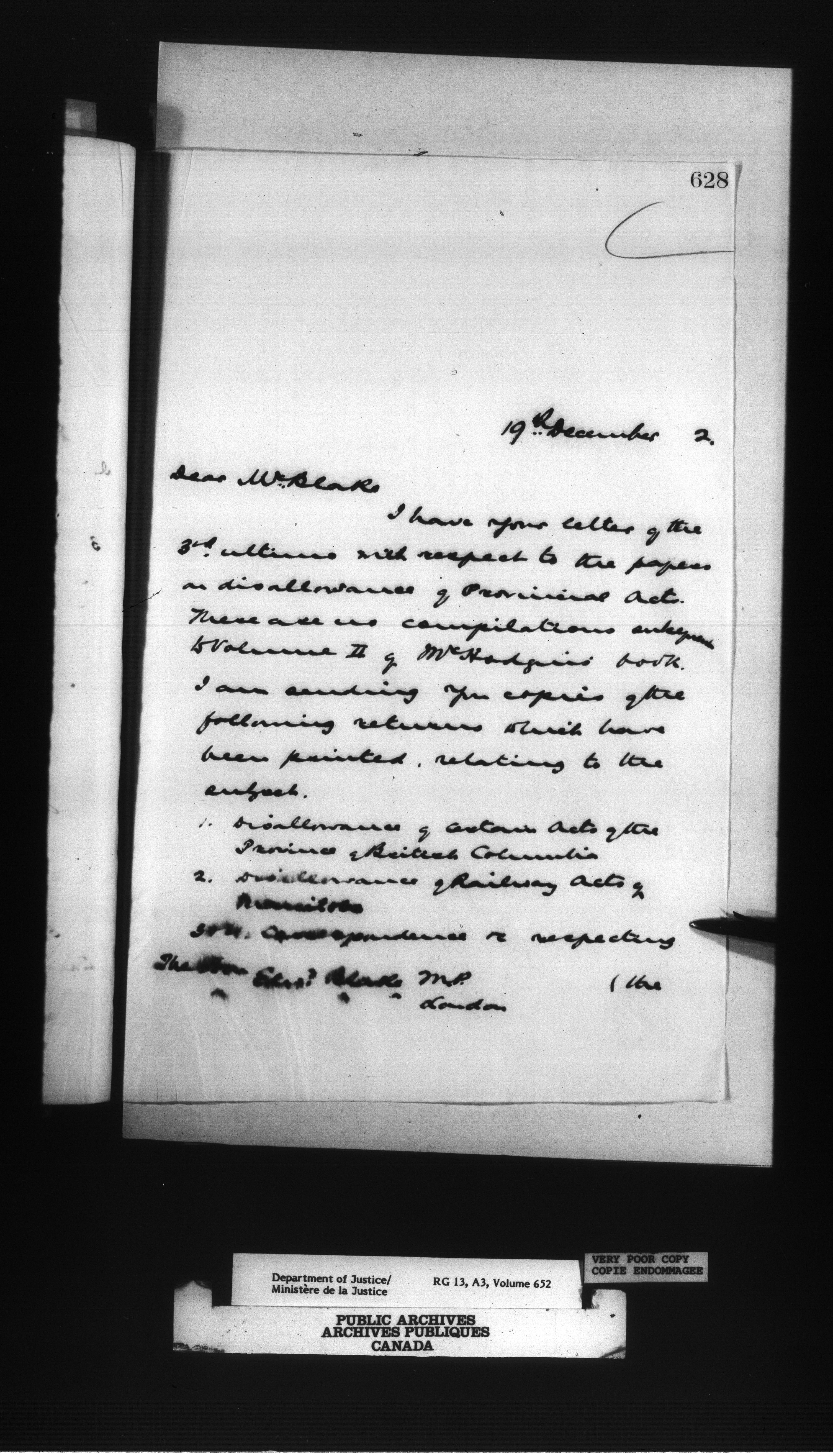 Letterbooks of the Office of the Deputy Minister of Justice - 14366