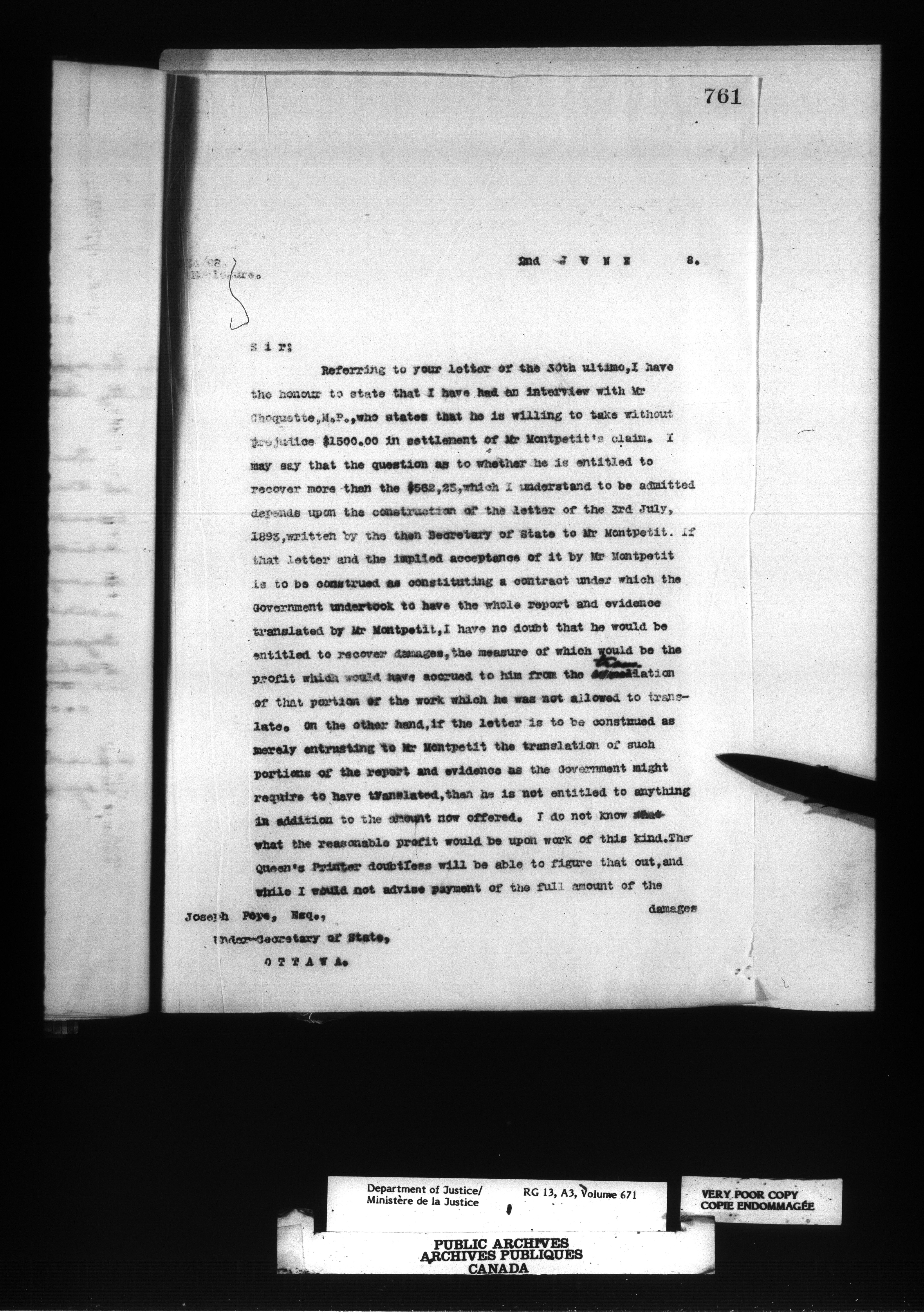 Letterbooks of the Office of the Deputy Minister of Justice - 14381